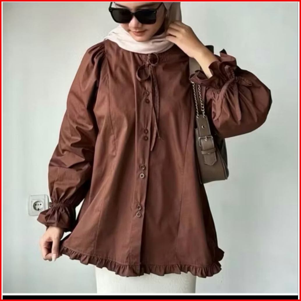 Garen Kameja Shirt Tali Rempel Pakaian Wanita - Atasan Wanita - Baju Tunik - Pakaian Terlaris - Atasan Terlaris - Tunik