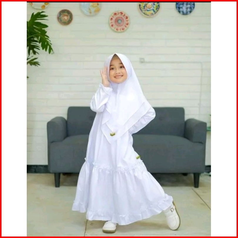 Gamis Anak Putih Gamis Manasik Haji Set Kerudung Baju Muslim Anak Warna Putih