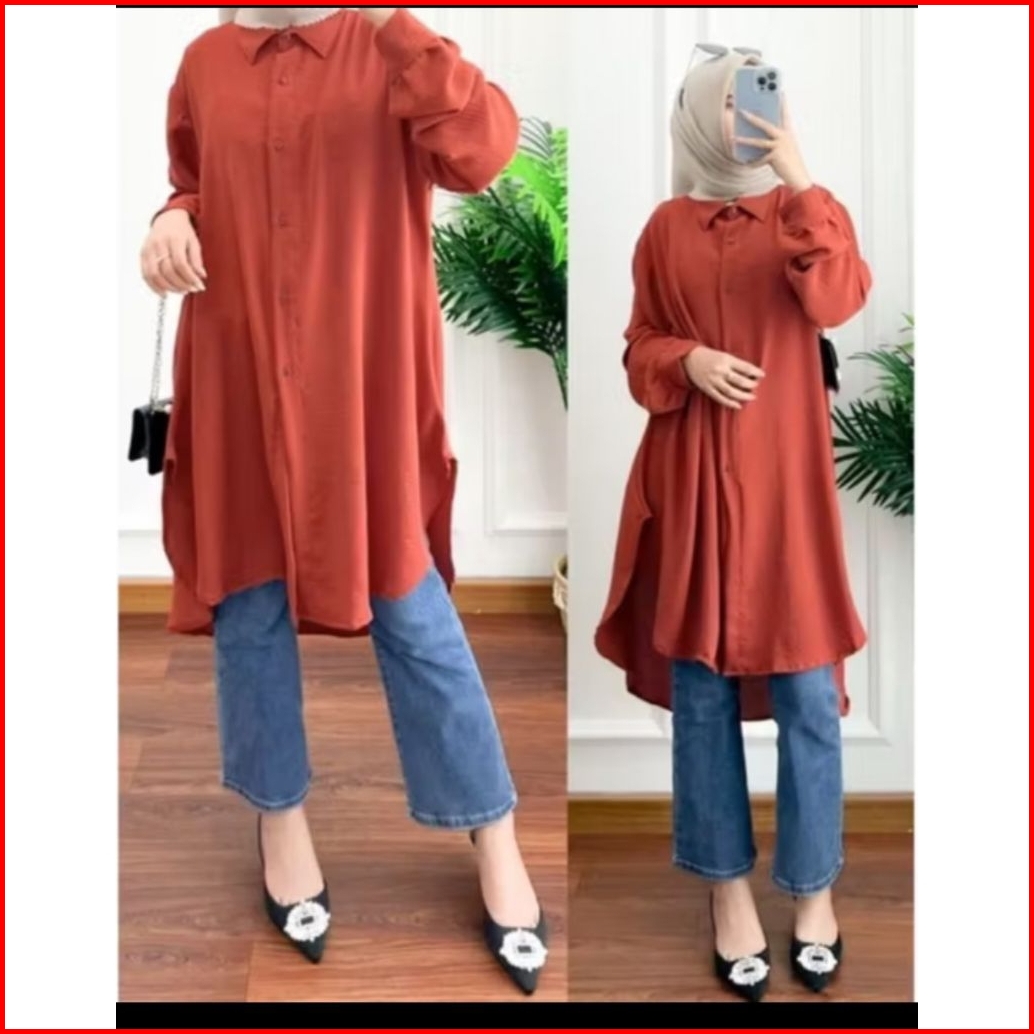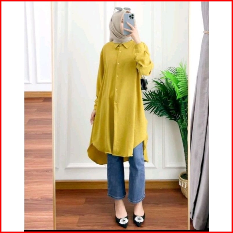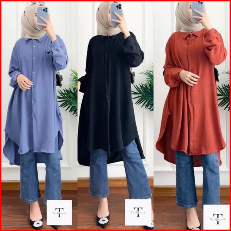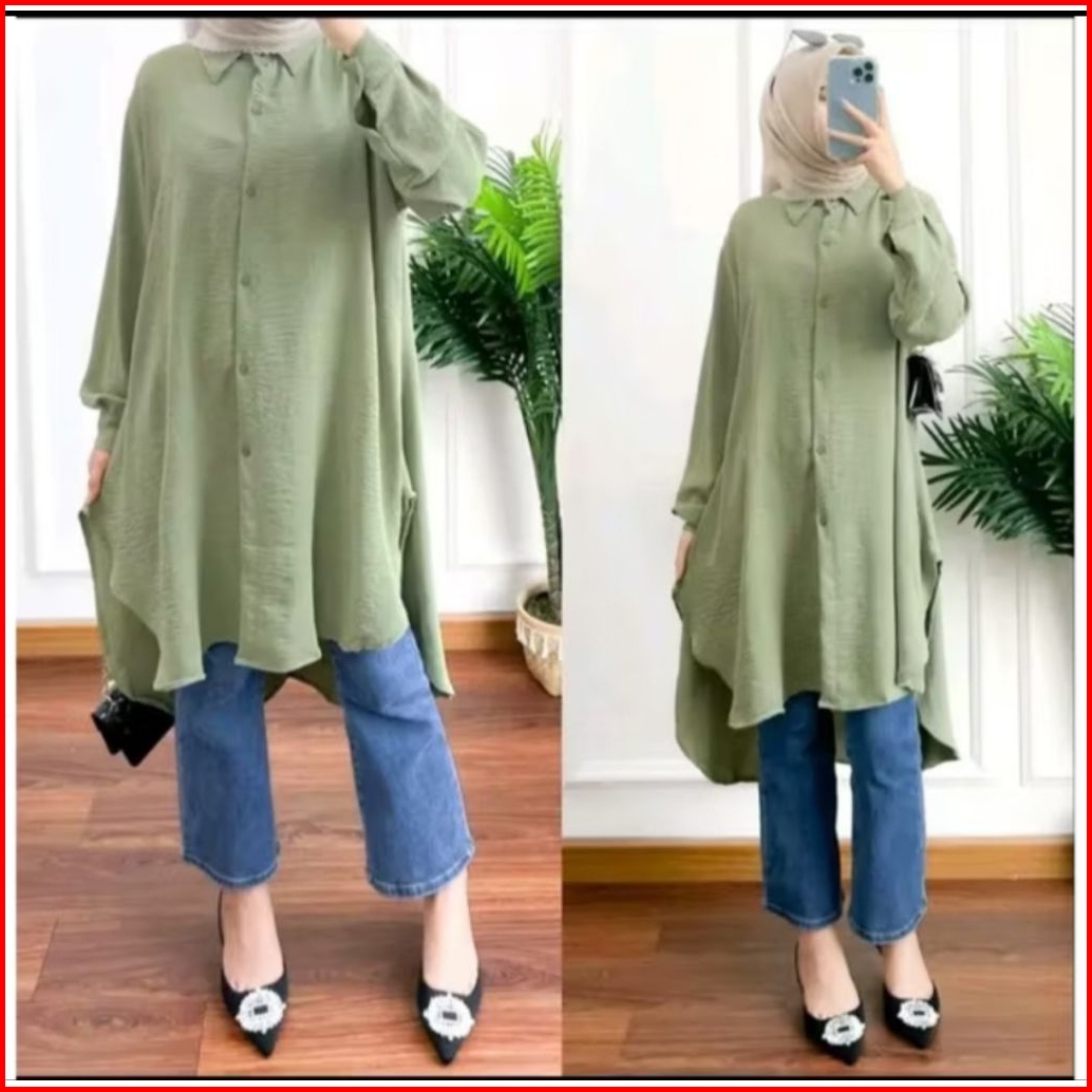 Made Longdres Tunik Polos Jumbo Busui Ful Kancing Whudu Frendely Longdres Overzise Crinkle Airflow Busui Whudu Frendely