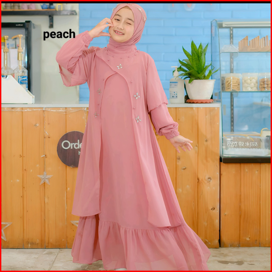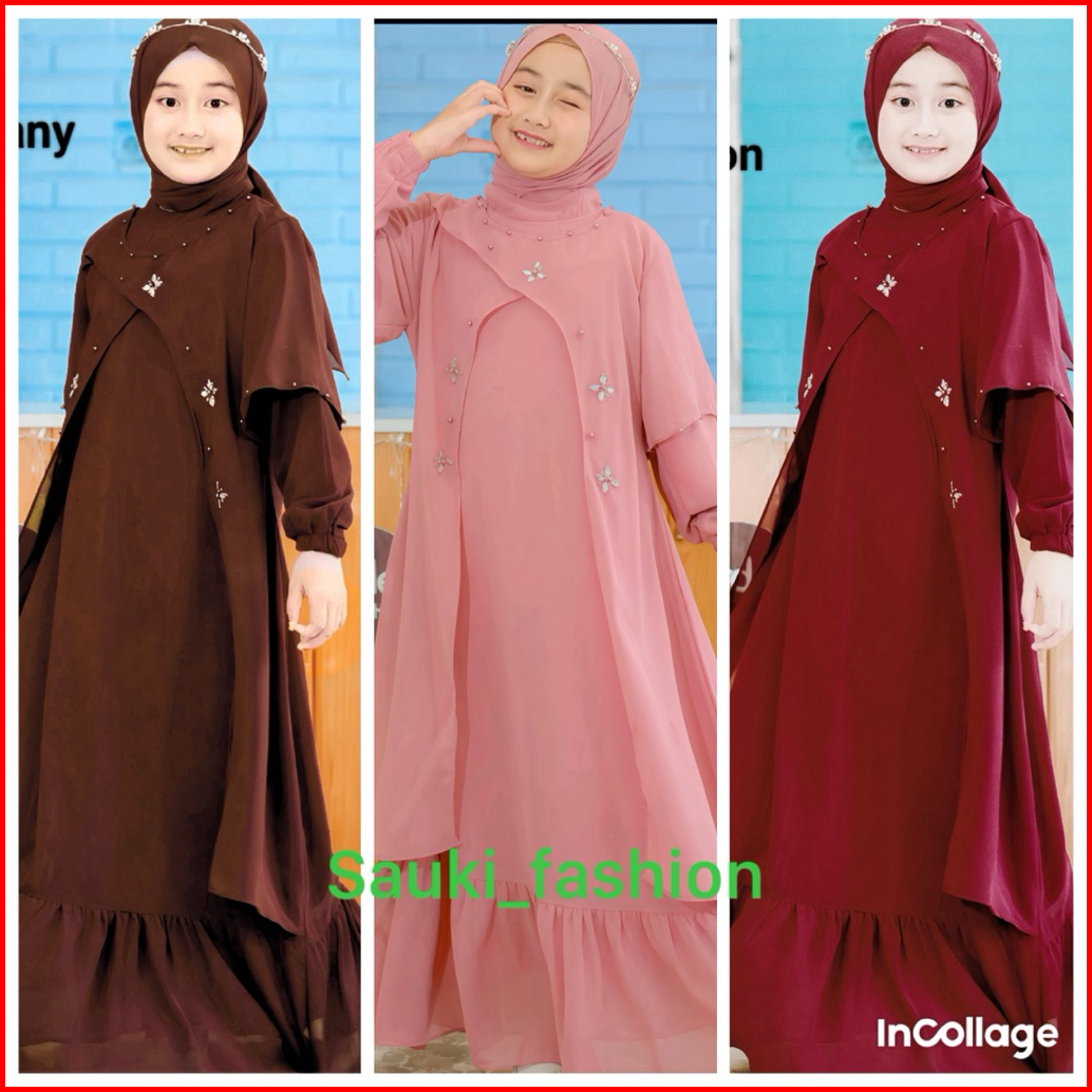 Gamis Abaya Zaina Kids Free Phasmina Usia 5-14 Tahun Uk M L Xl Bahan Ceruty Babydoll