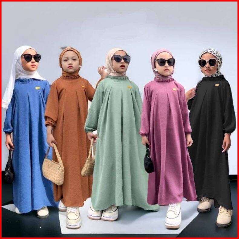 Gamis Anak Model Maryam Bahan Cringkle Airflow Terbaru Gamis Lebaran Anak Polos Untuk Usia 5-13tahun
