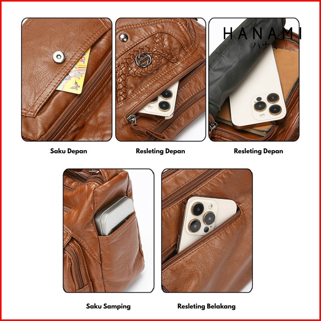 Hanami Tas Selempang Wanita Ranika Cokelat Kulit Premium Sling Bag Cantik Elegan Terbaru Ta1101b7