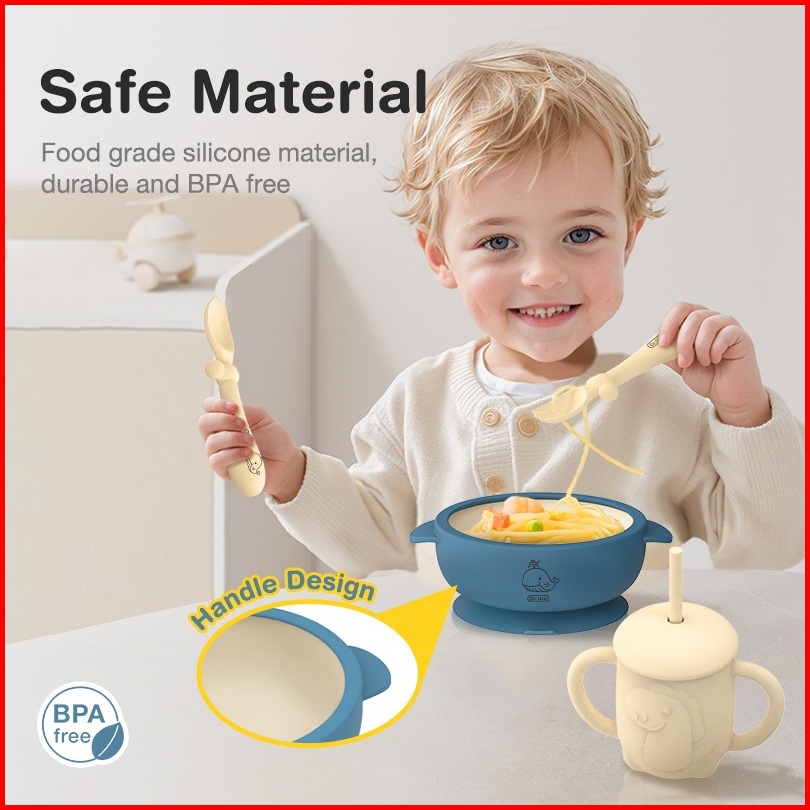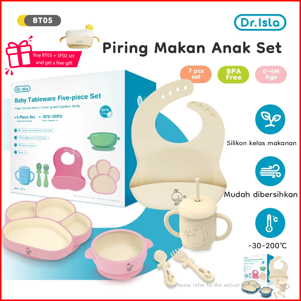 Dr.isla Piring Makan Anak Set 7pcs Mangkuk Sendok Makan Bayi Celemek Makan Bayi Botol Minum Bayi Set Kotak Hadiah Bt05