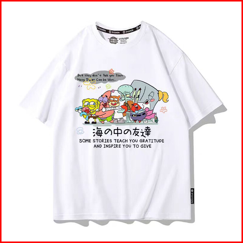 Edisi Terbatas Pakaian Kolaborasi Spongebob Kaos Cowok Cewek Distro Vintage Retro