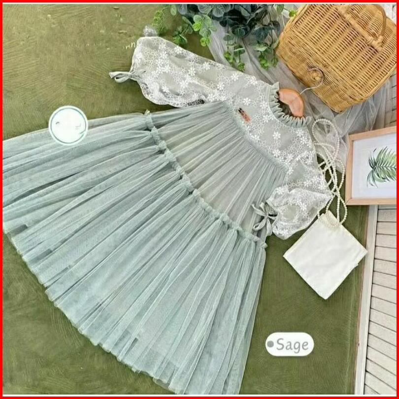 Hanania Kids Usia 2-10 Tahun Bahan Shakila Mix Tille Gamis Anak Perempuan Motif Brokat