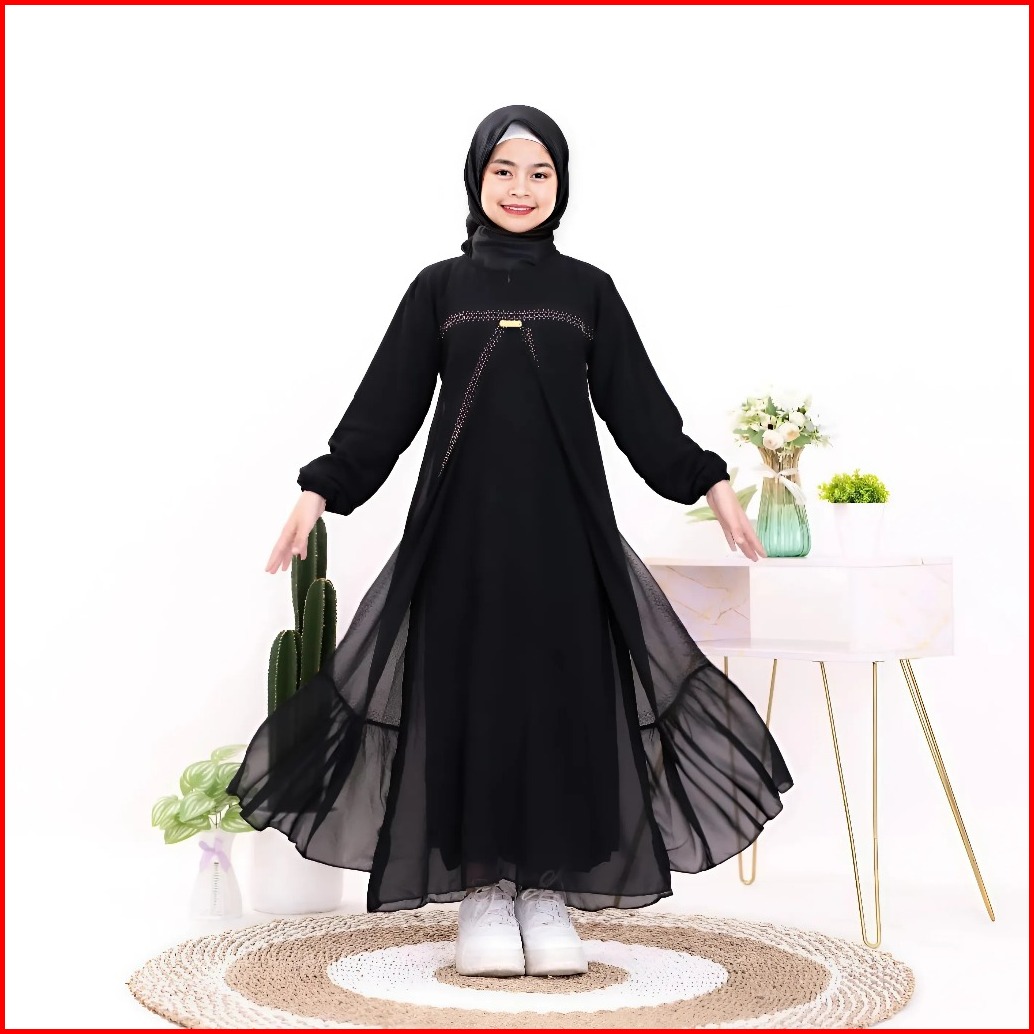 Hanakids Abaya Anak Perempuan Crinkle Mix Swarosky Baju Gamis Anak Elegant Terlaris