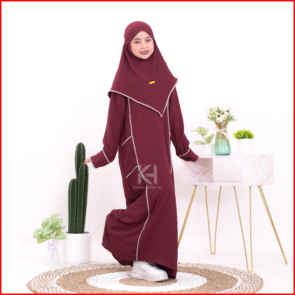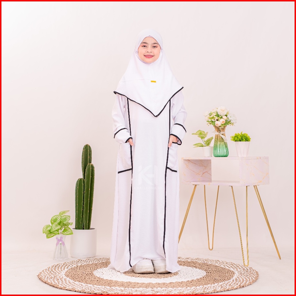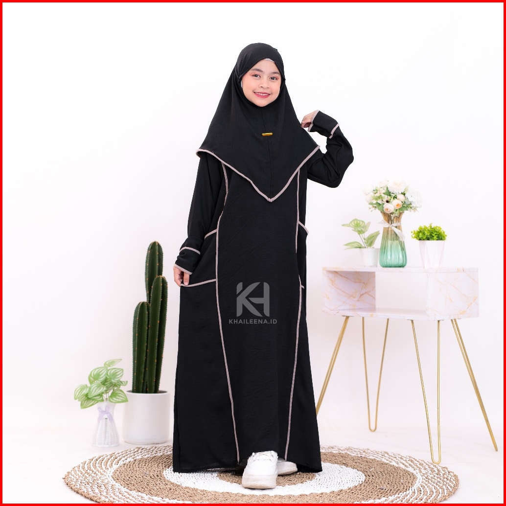 Abaya Set Hijab Couple Anak Perempuan Baju Gamis Ngaji Sehari Hari Bahan Premium