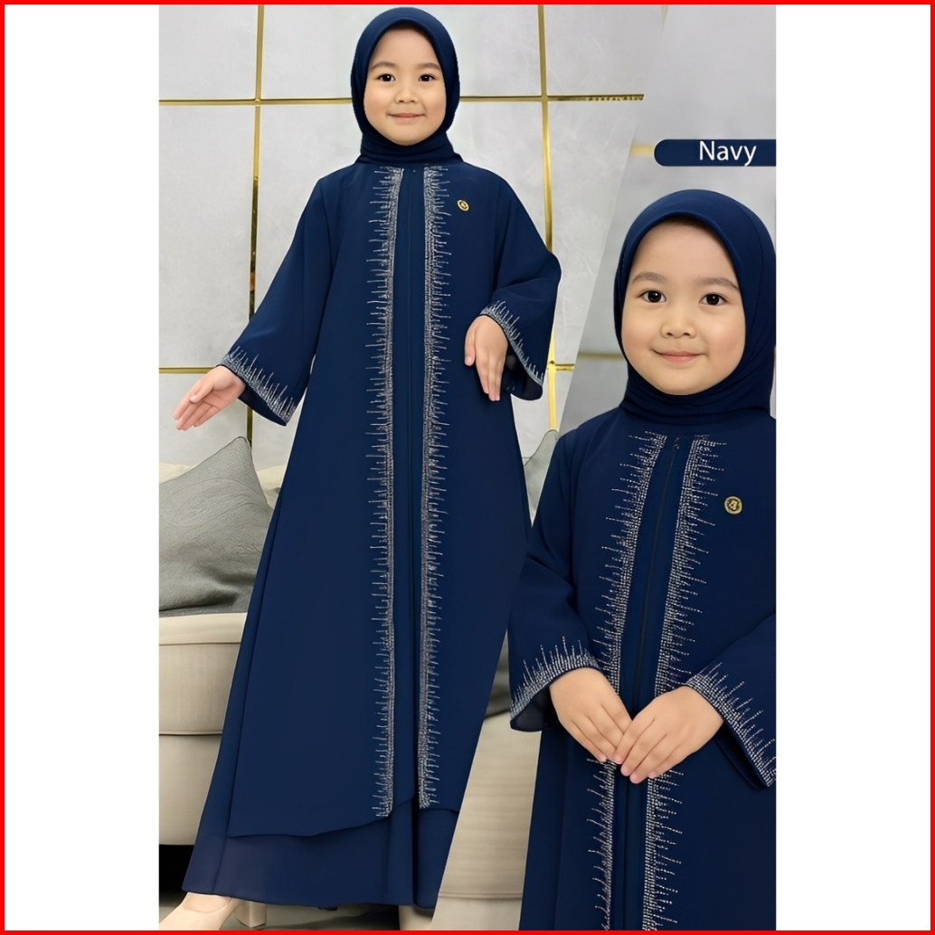 H02 Gamis Anak Perempuan Usia 4-13 Tahun Matt Crinkle Mix Swarosky Gamis Lebaran Anak Terbaru 2025