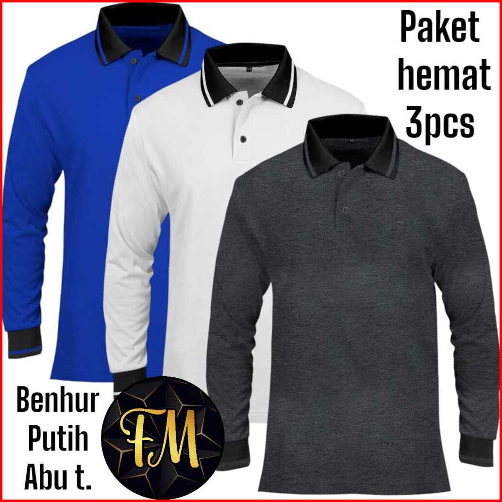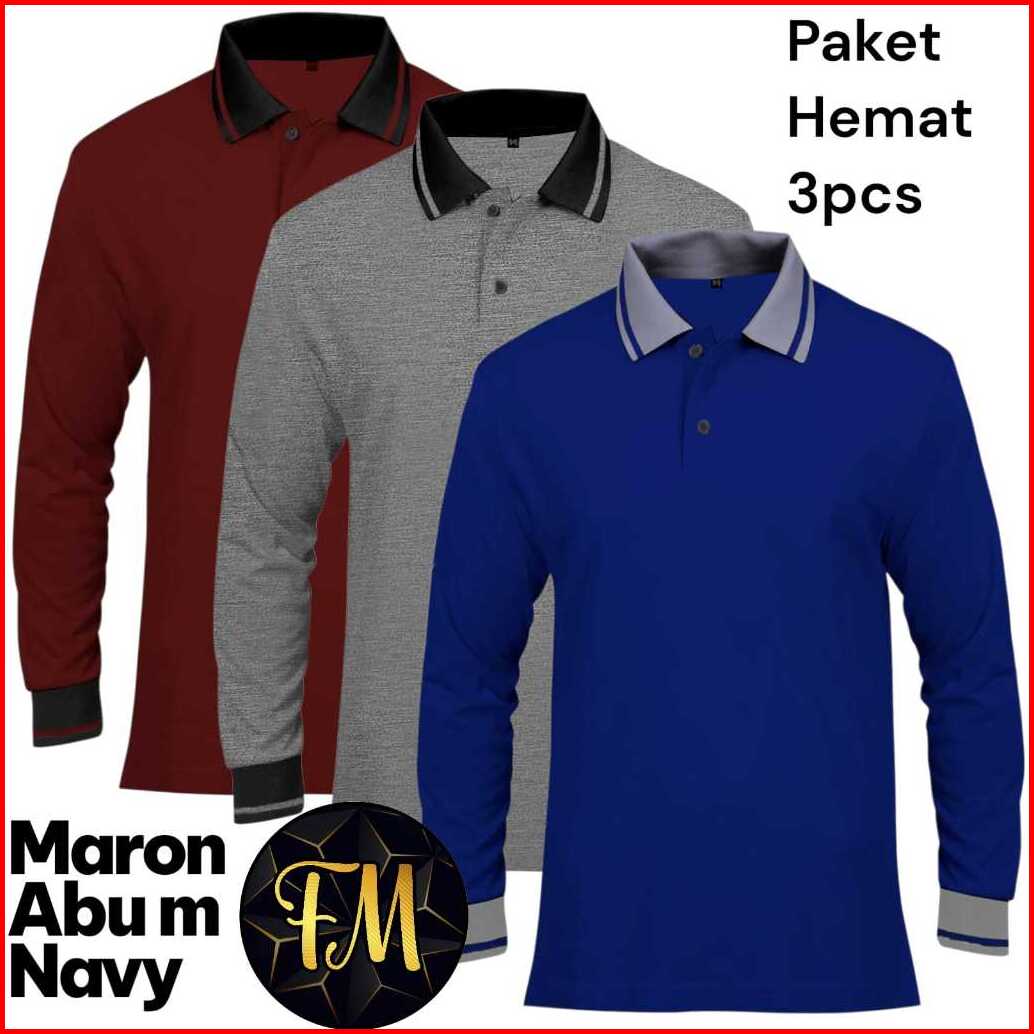 Findmine - Paket 3pcs Kaos Polo Shirt Polos Lengan Panjang Cowok Wanita