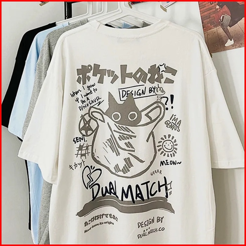 Promo Kaos Kartun Wanita Musim Panas 2023 Kaus Lengan Pendek Print Kucing Kawaii Harajuku Pakaian Streetwear Pasangan