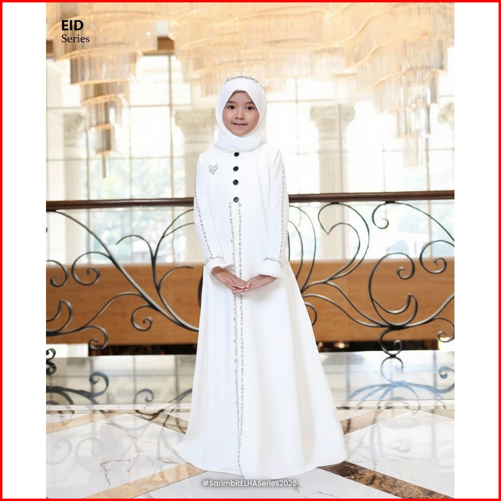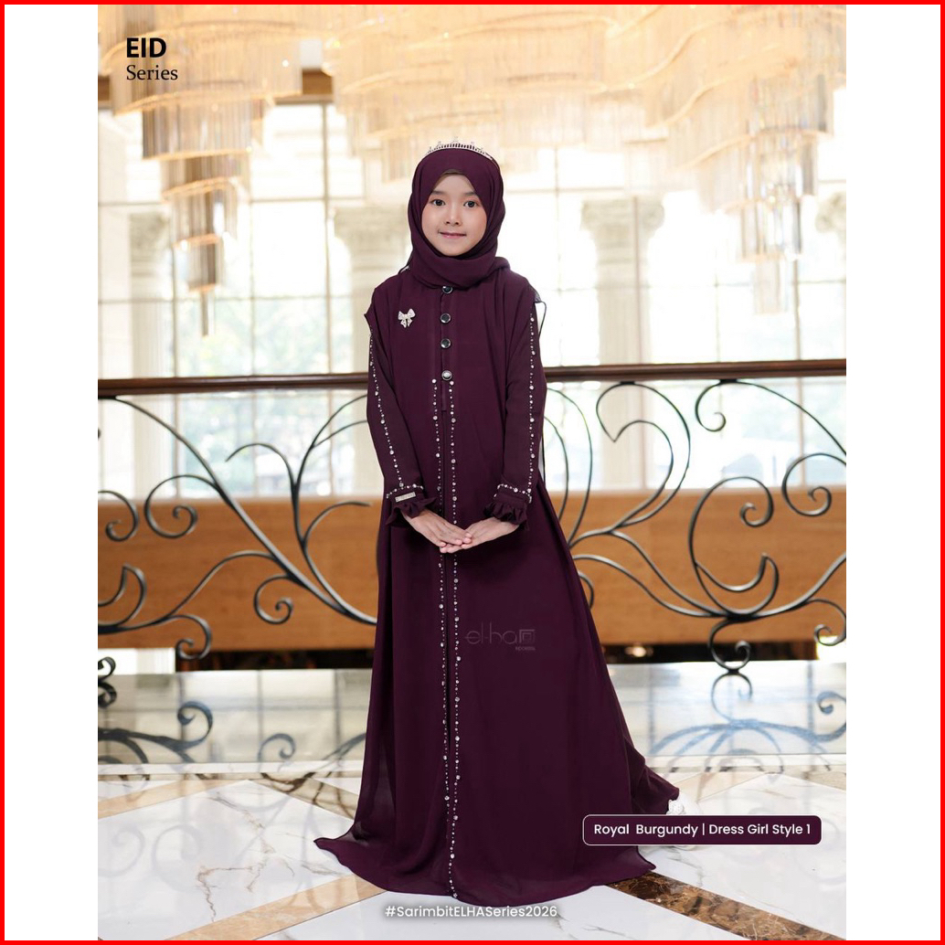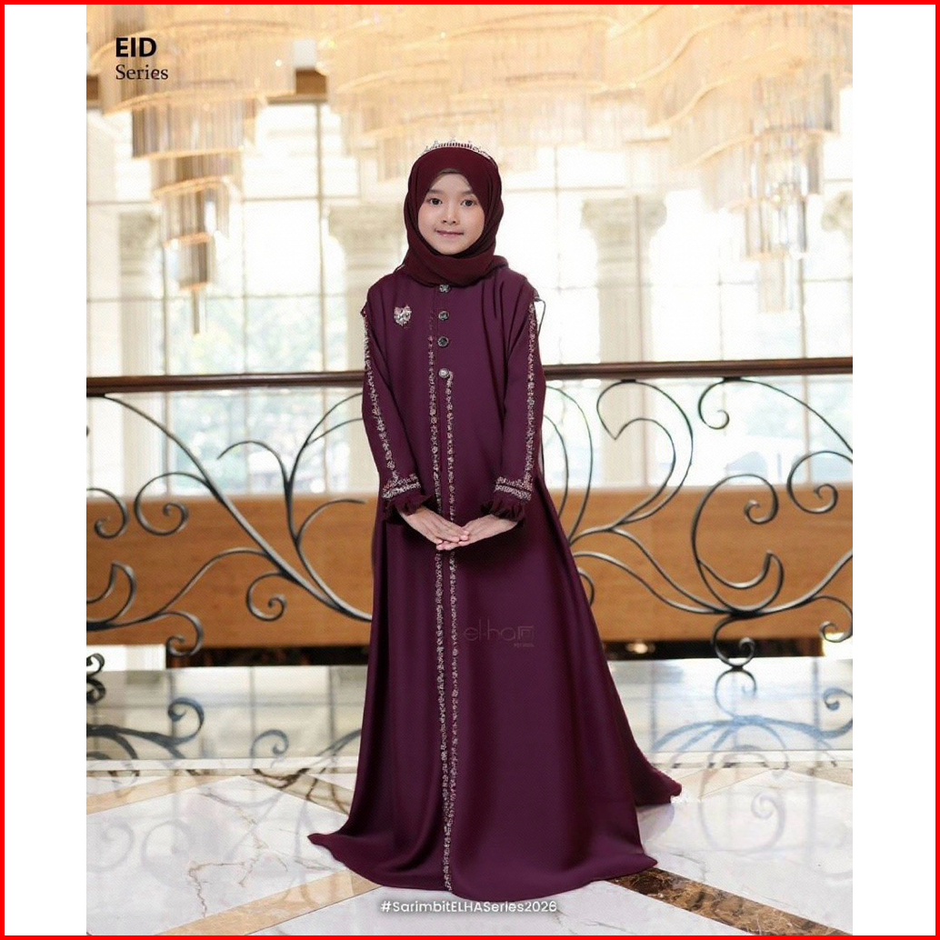 Elha Kids Abaya Muslim Anak Perempuan Ceruty Babydoll Aplikasi Payet Usia 7-15 Tahun Abaya Dubay Mahogany Burgundy Mewah