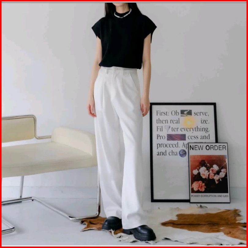 Joy Pants - Loose Pants Trousers - Highwaist Wide Leg - Celana Kantor Formal Wanita