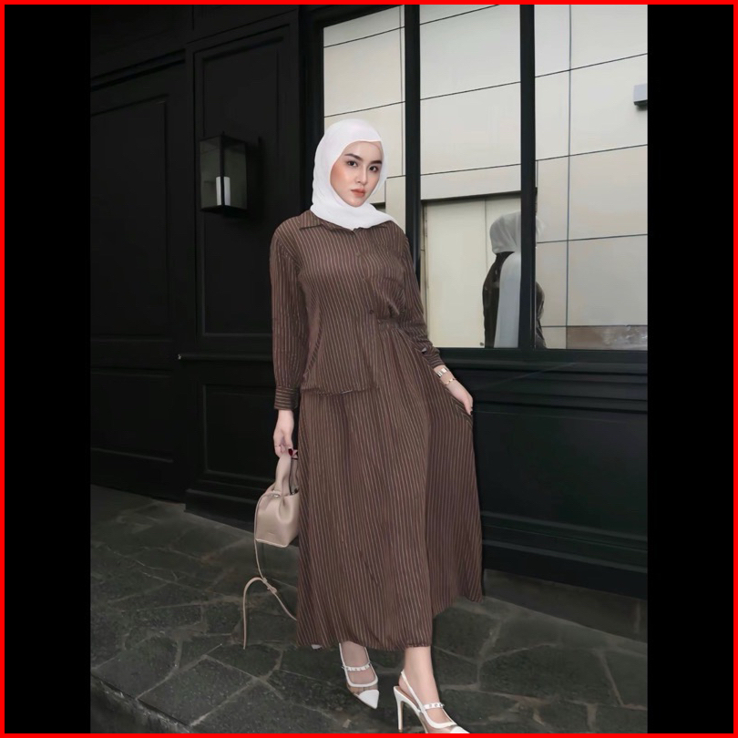 Clarissa One Set Rok Dan Celana Kulot Wanita Semi Cutbray Rayon Motif Premium