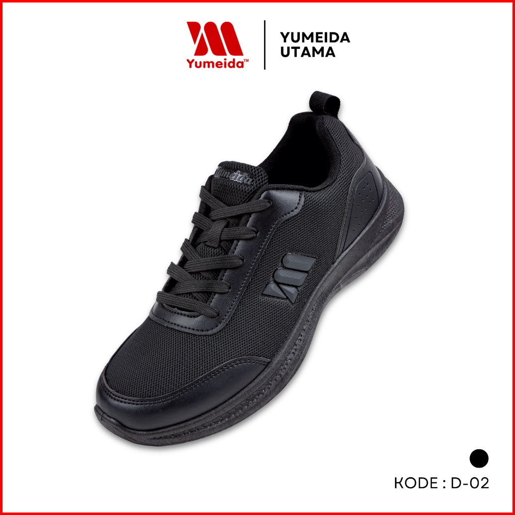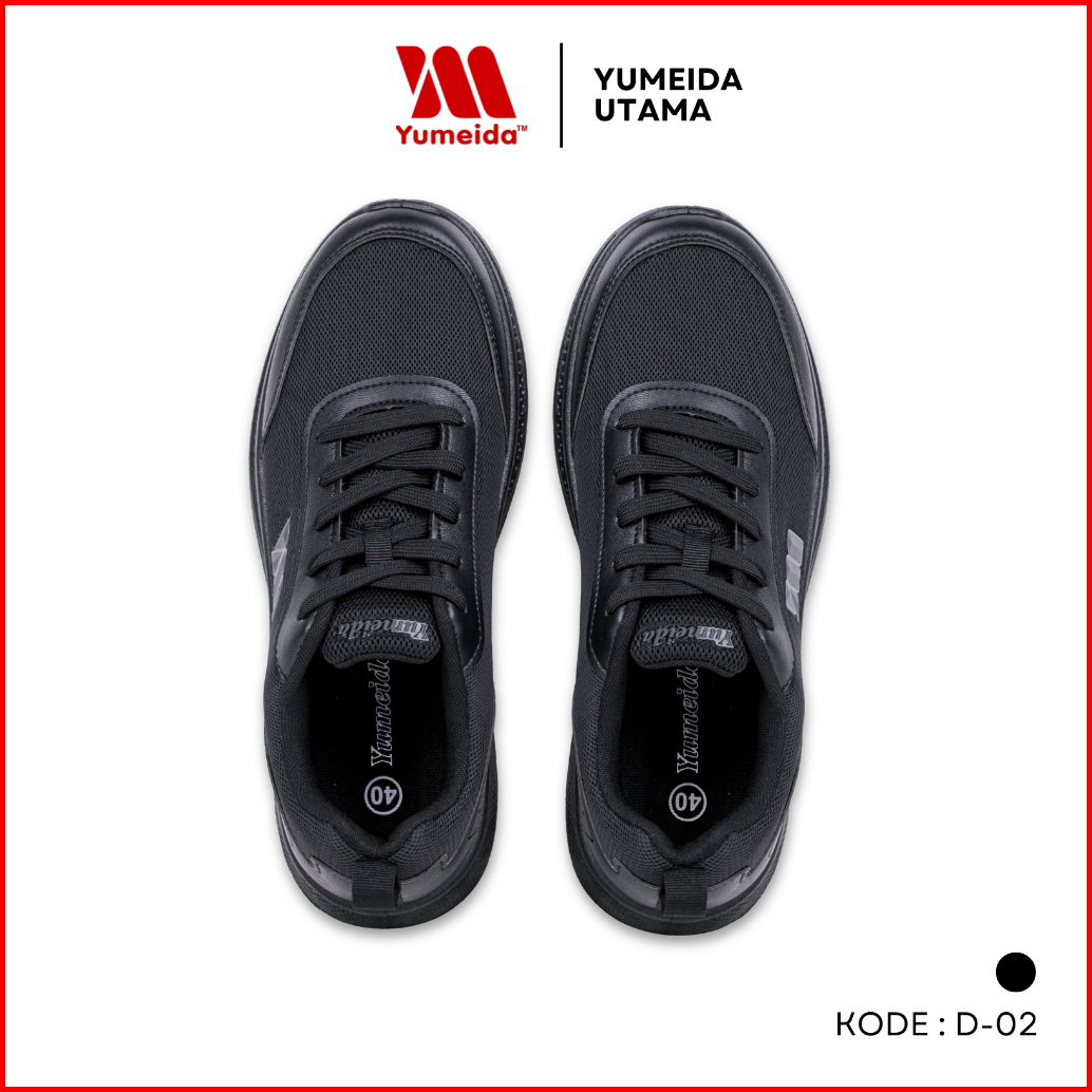 Yumeida D-02 - Sepatu Sneakers Pria Wanita Sekolah Kets Hitam
