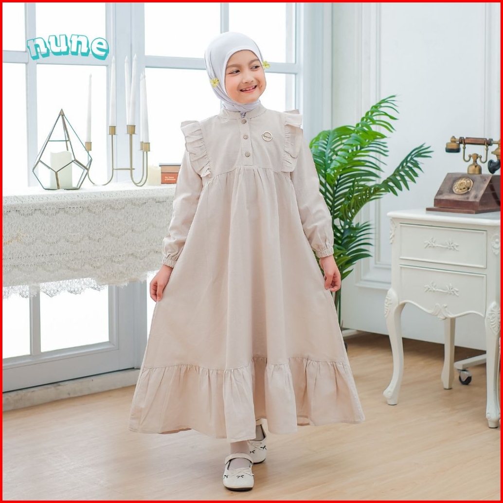 Nune Dress Anak Linen Premium Gamis Muslim Anak Perempuan Usia 3-10 Tahun