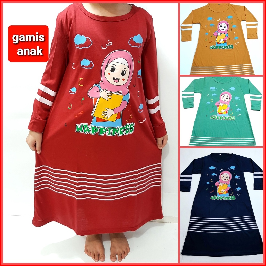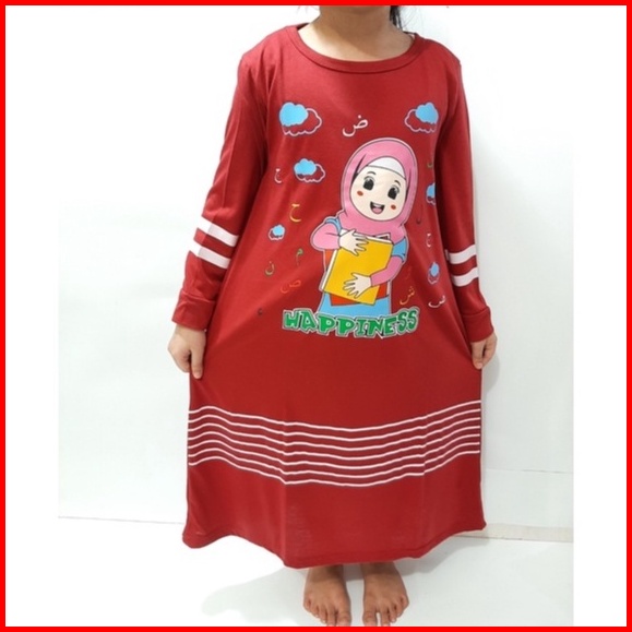 Gamis Anak Muslim Perempuan 1-5 Tahun Kaos Tangan Panjang Cewek Salur