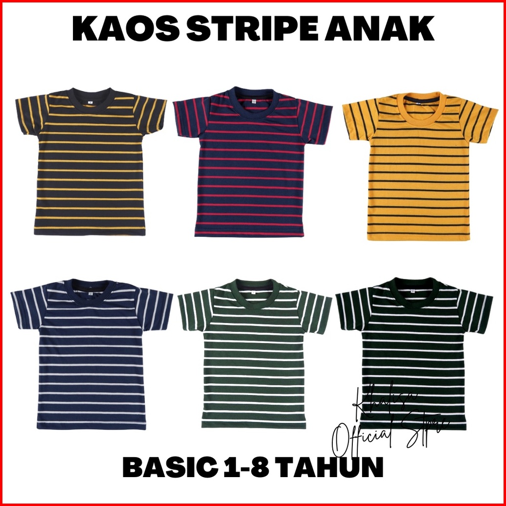 Kaos Anak Stripe Salur Belang 1thn S D 8thn Cotton Cvc 30s