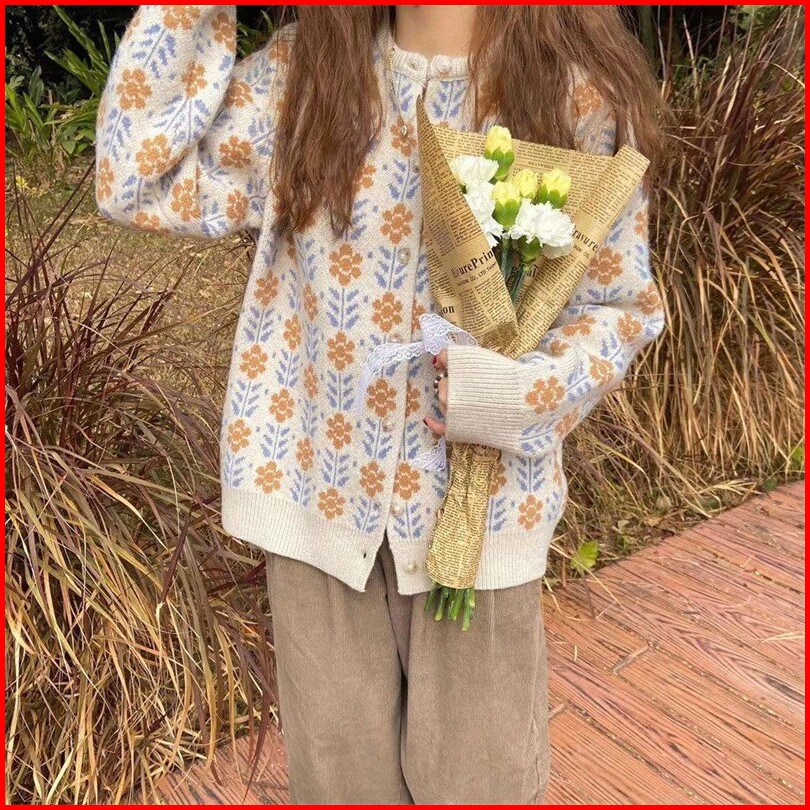 Pr Cardigan Wol Rajutan Bunga Gaya Korea Baru Lembut Dan Ramping