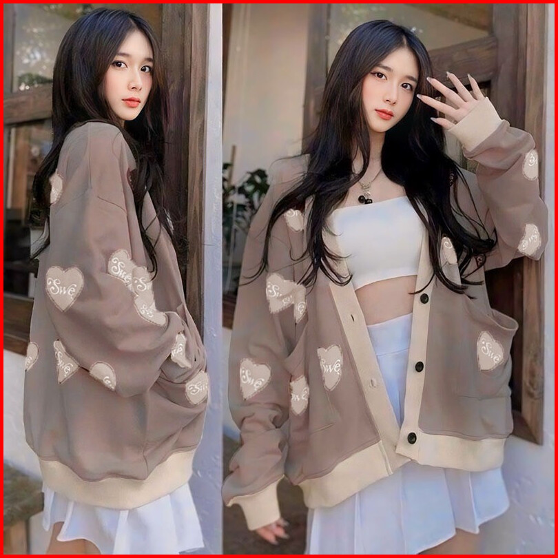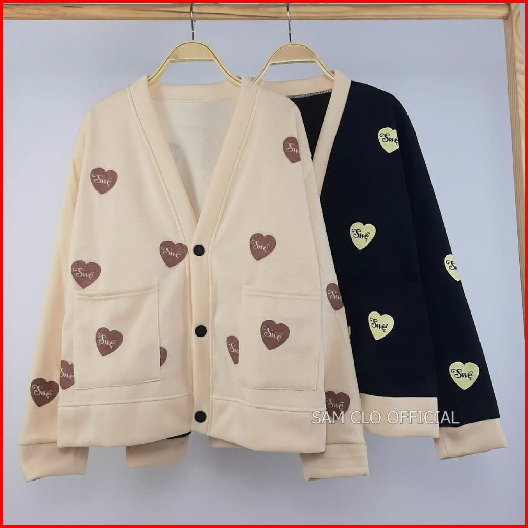 Swe Love Cardie Sweater Oversize Wanita Korean Style Cardy Kancing Bersaku
