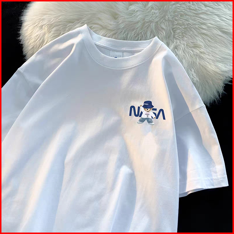 Kaos Lengan Pendek Pria Kolaborasi Nasa Dengan Motif Beruang Katun Tebal 100 Collar Round Lebar Santai Pasangan Couple