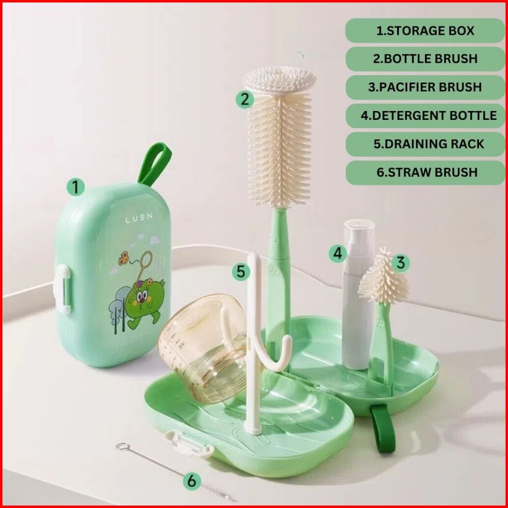 6 In 1 Portable Travel Brush - Brish - 1 Set Sikat Botol Bayi Rak Pengering Praktis Disimpan