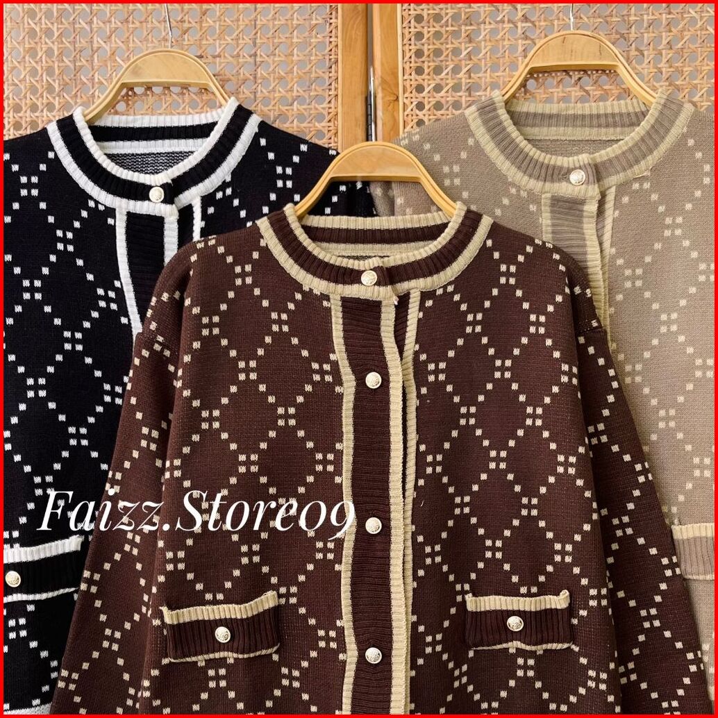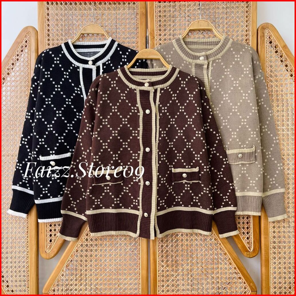 Alexy Cardy Knitwear - Outer Atasan Cardigan Rajut Wanita Kancing Motif Sido Korean Style Premium