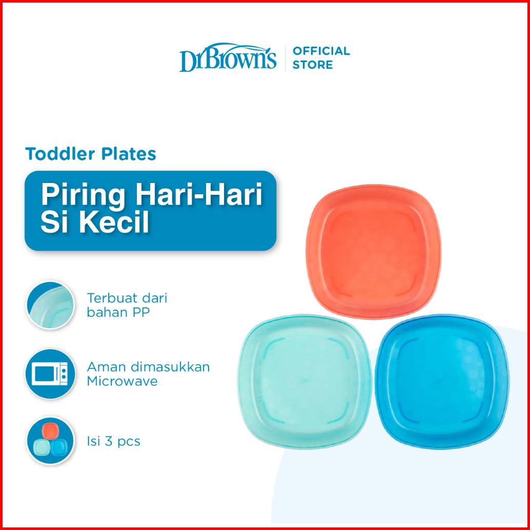 Dr. Brown S Toddler Plates 3-pack Tf022 Peralatan Makan Bayi Piring Makan Anak Peralatan Makan Mpasi