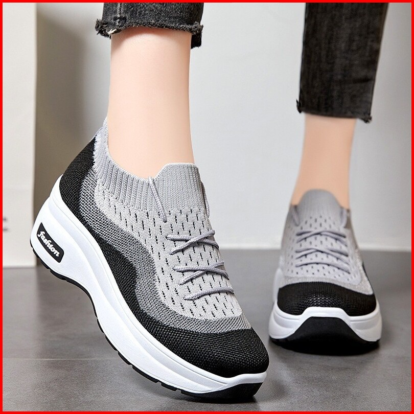 Scs Sc096 Sepatu Wanita Slip-on Flyknit Berkualitas Highsole Daily Bagus Comfy Praktis G2127