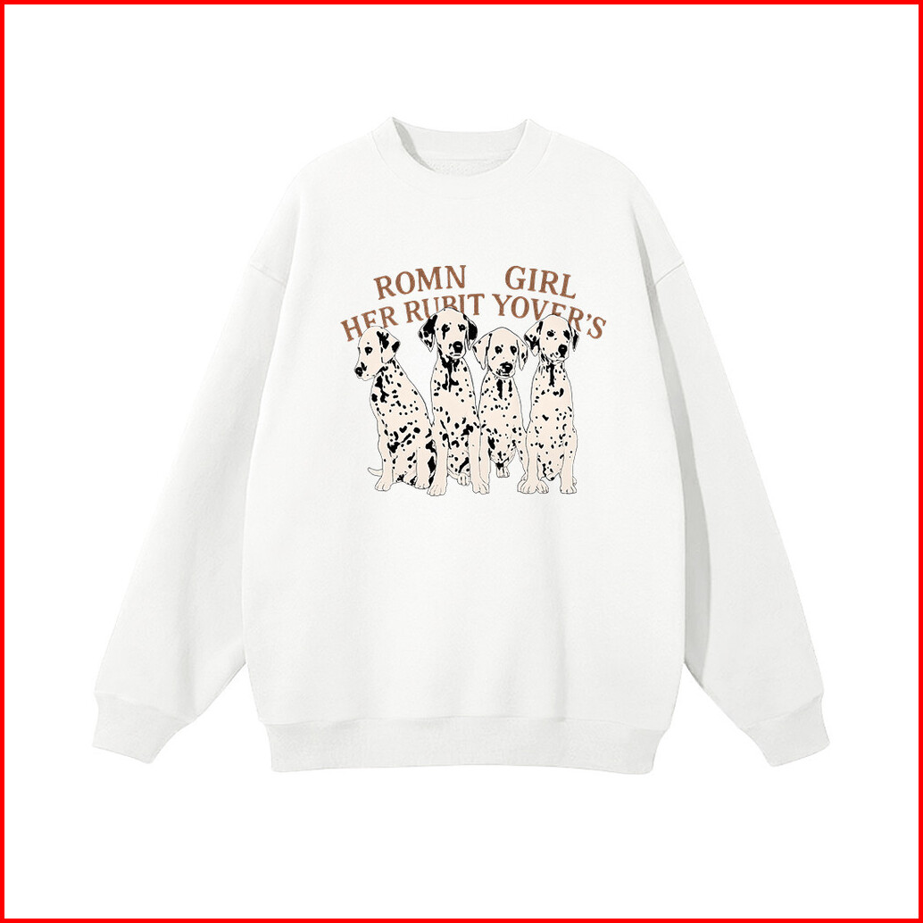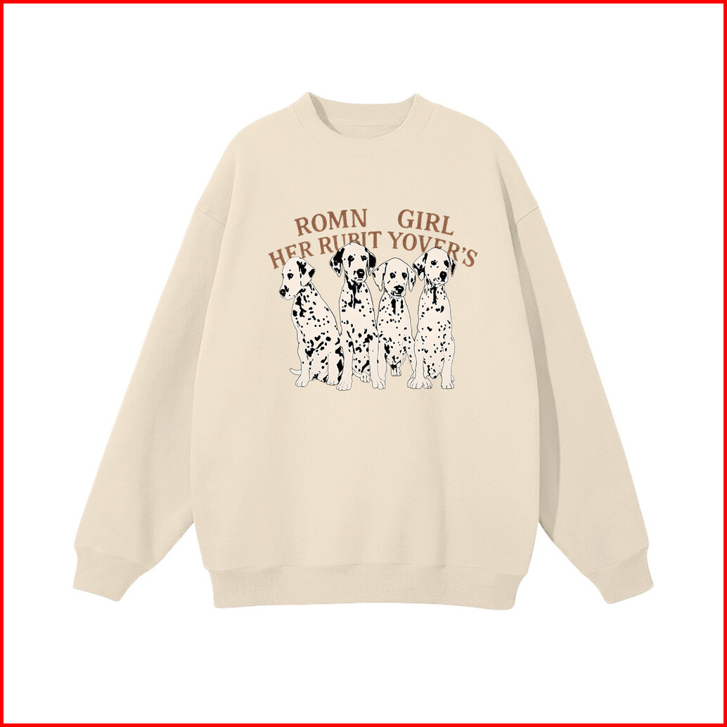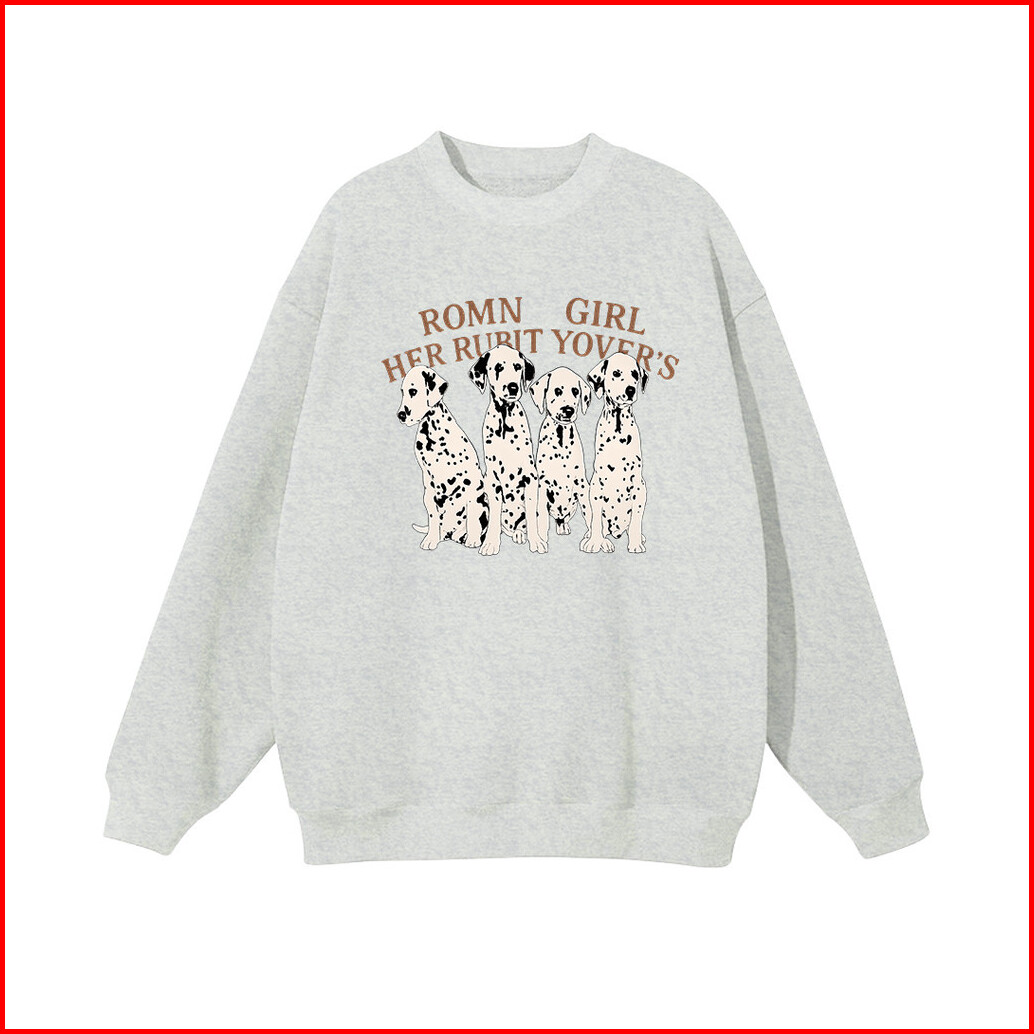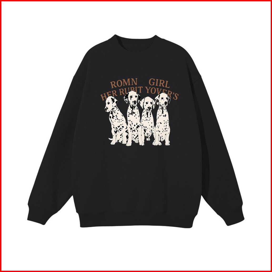Lucky88k - Crewneck Sweater Wanita Motif Dalmatian Dog Korean Style Baju Bahan Cotton