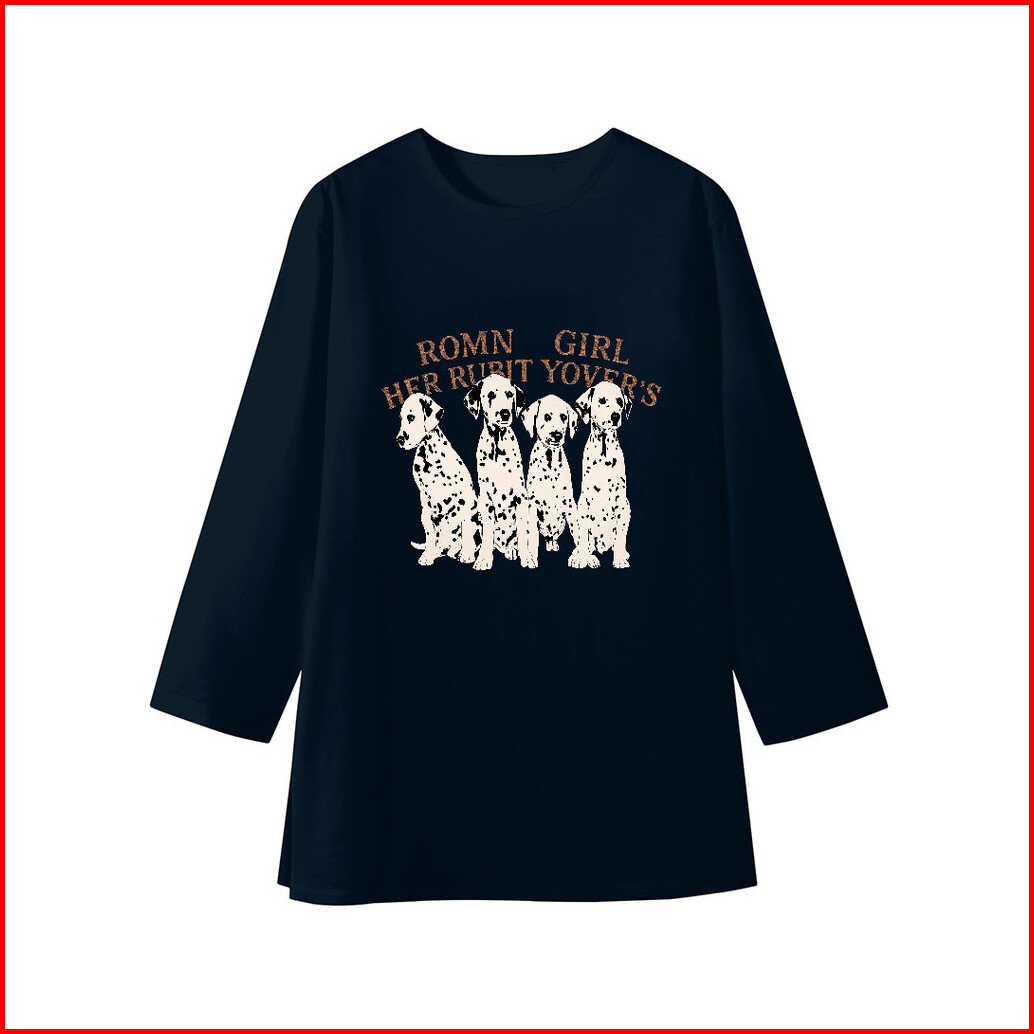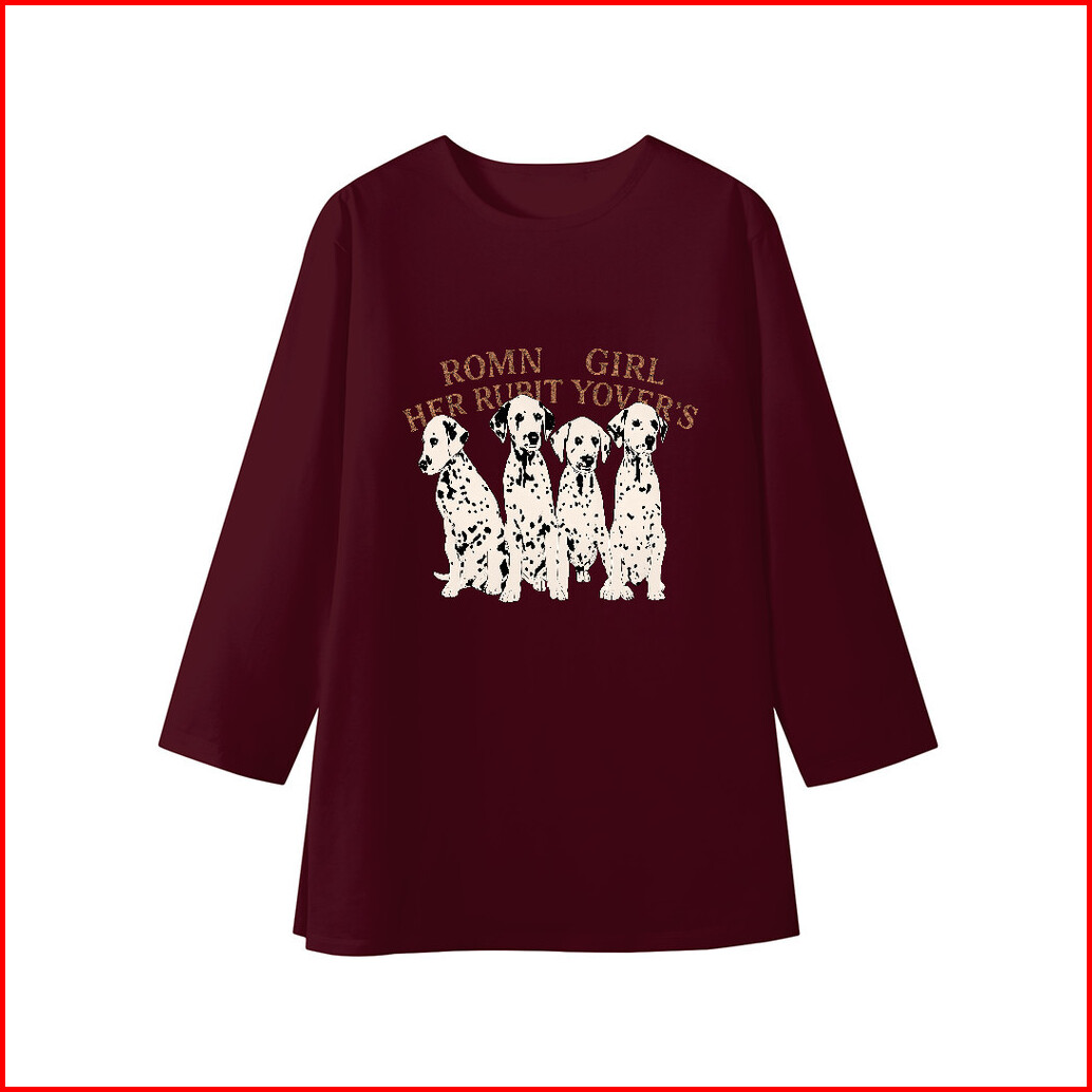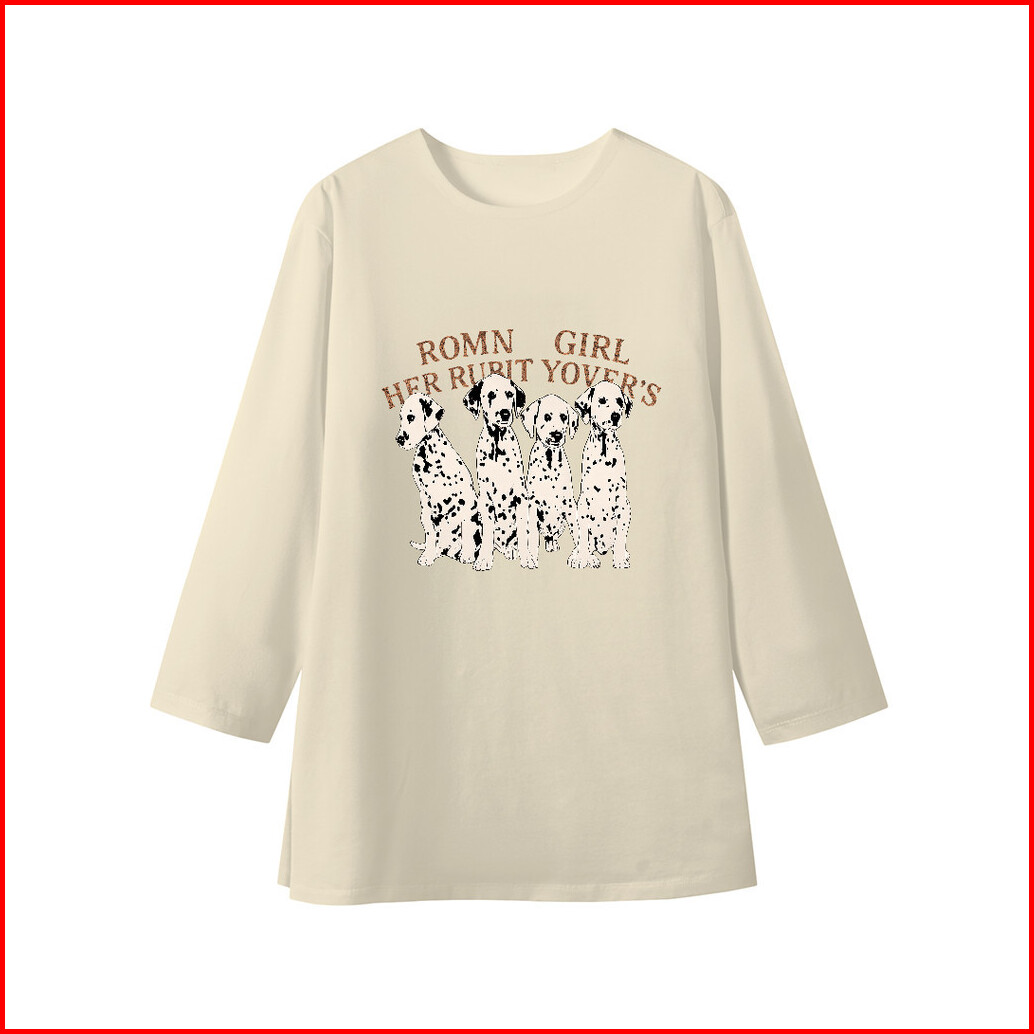 Lucky88k - Kaos Lengan 7 8 Baju Kaos Oversize Wanita Motif Dog Dalmatian Korean Style Baju Bahan 100 Cotton