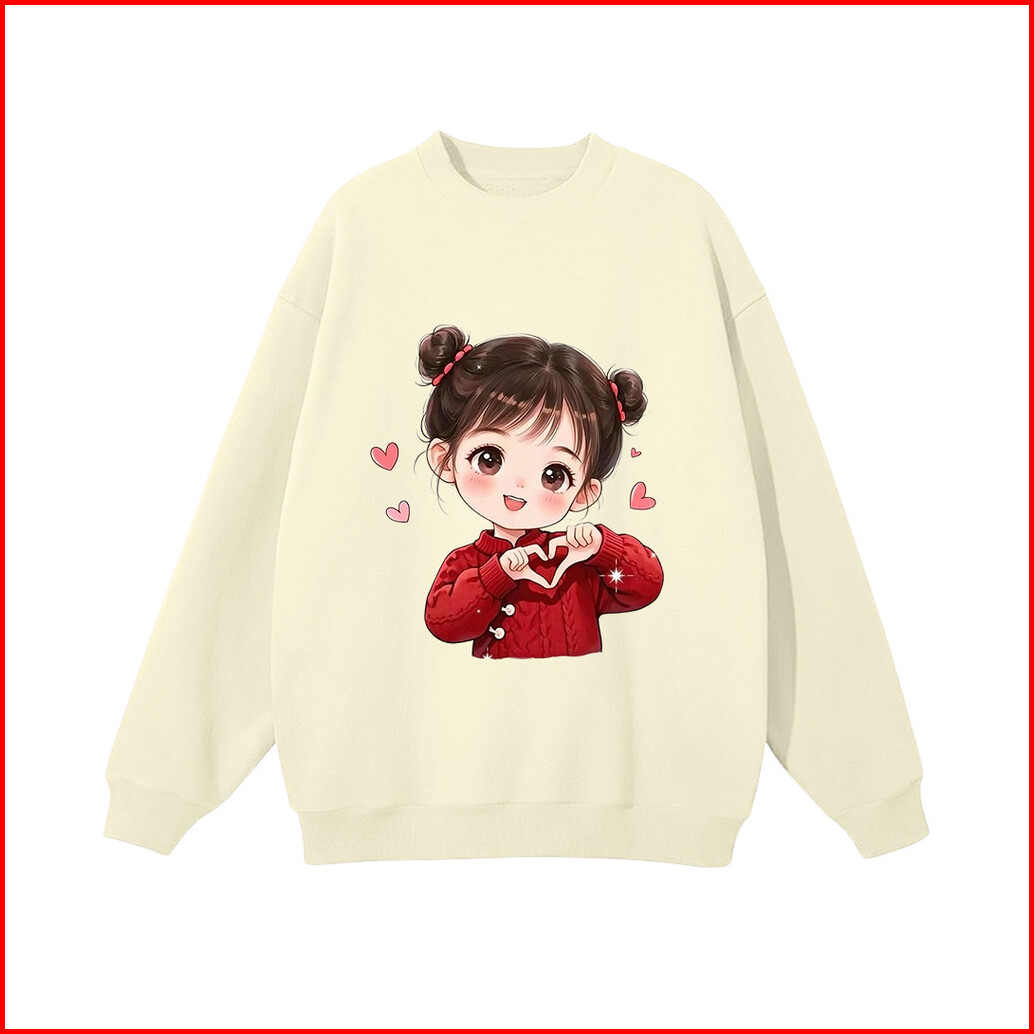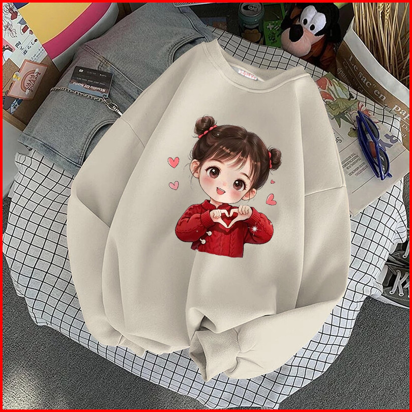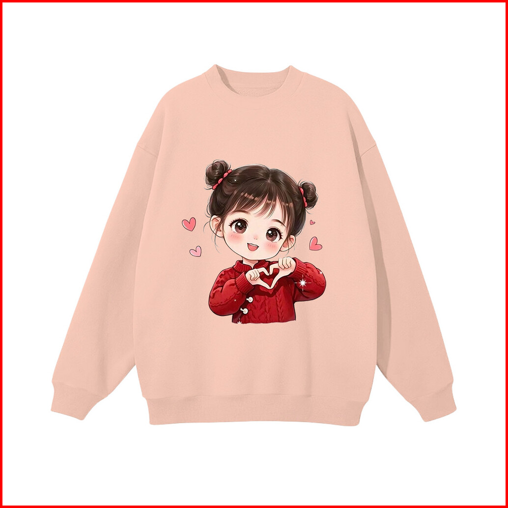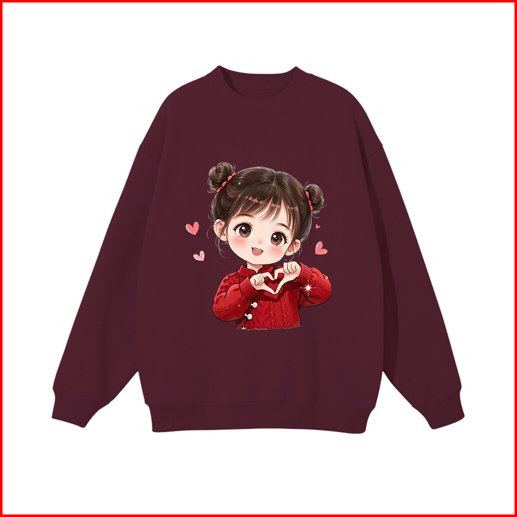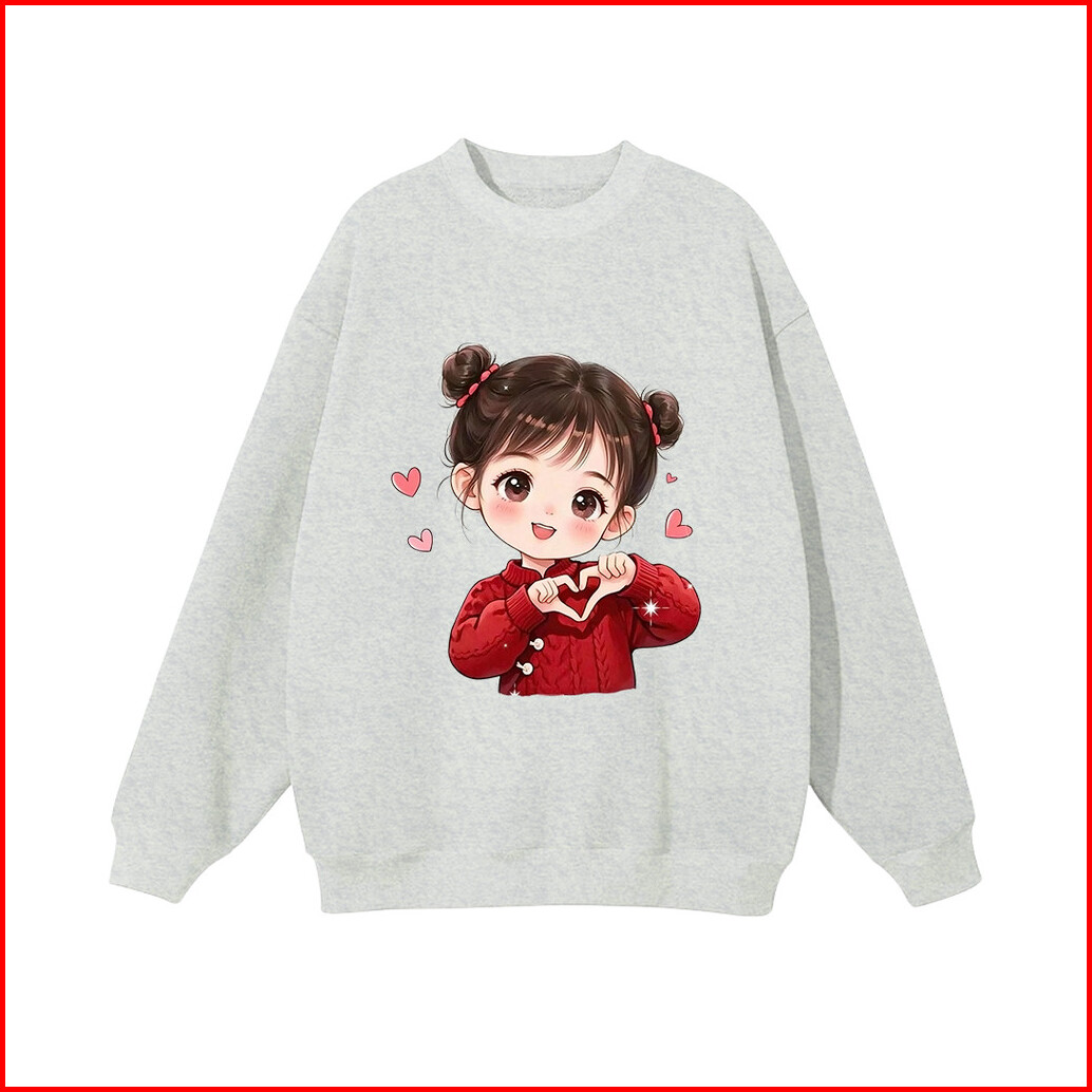 Lucky88k Sweater Oversized Street Style Korean Style Gambar Love Girl Bahan Cotton