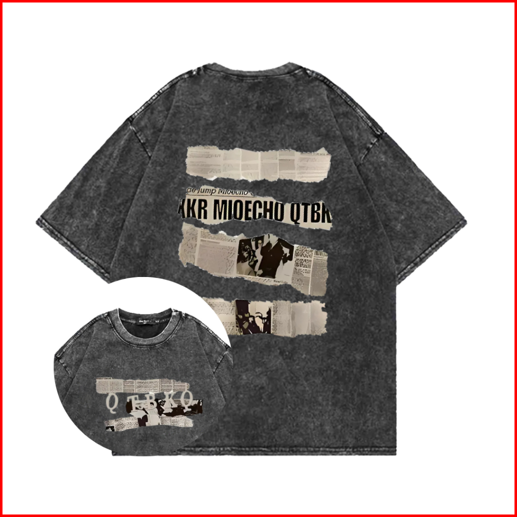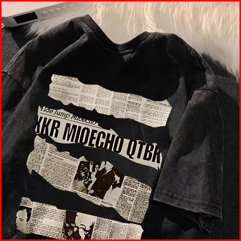 Lucky88k Washed Tshirt Lengan Baju Pendek Kaos Oversize Cetakan Retro Qtbkq Korean Style Bahan 100 Cotton