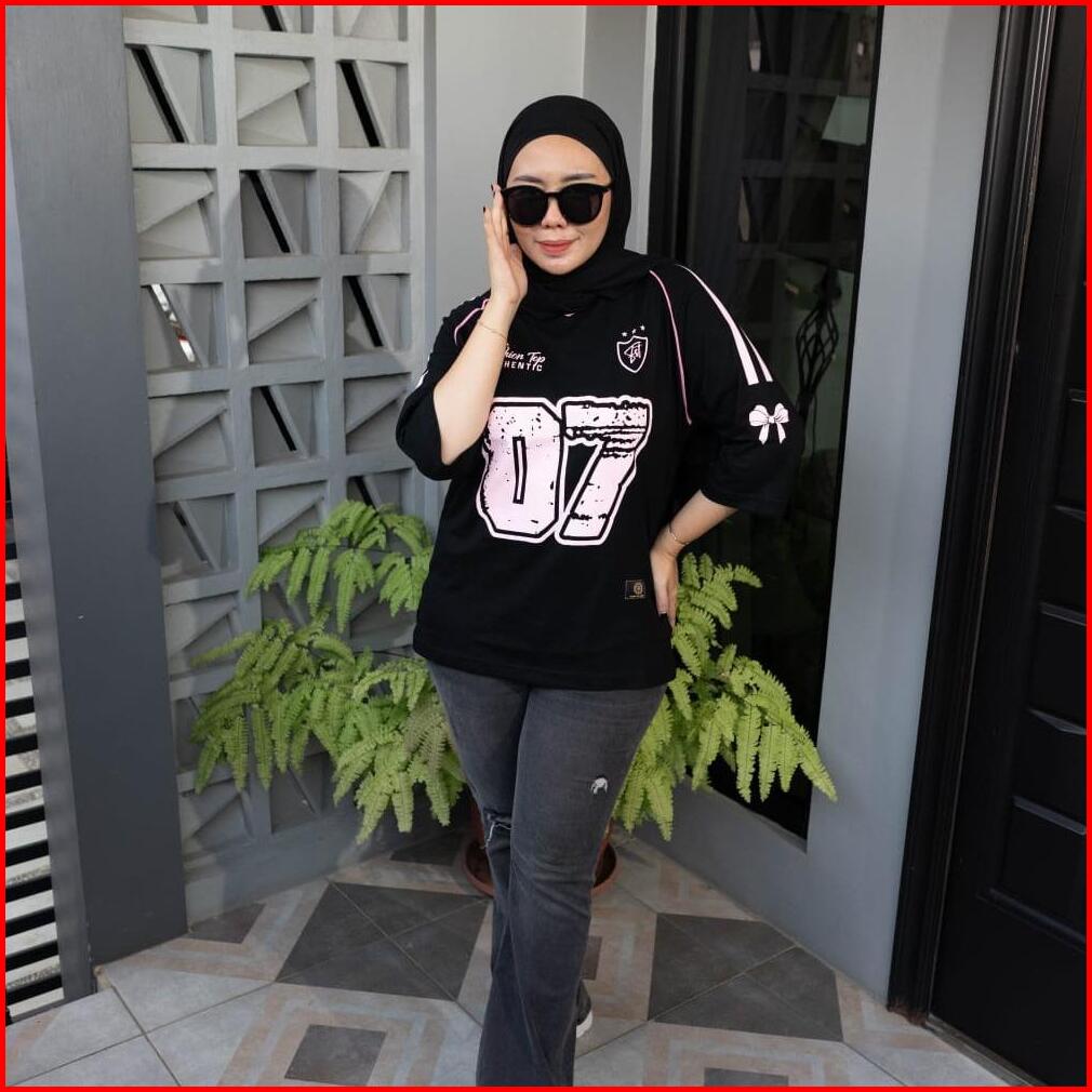 Xvlore Oversized T-shirt Wanita Vintage Kaos Jumbo Baseball Wanita Atasan Number Sporty 07
