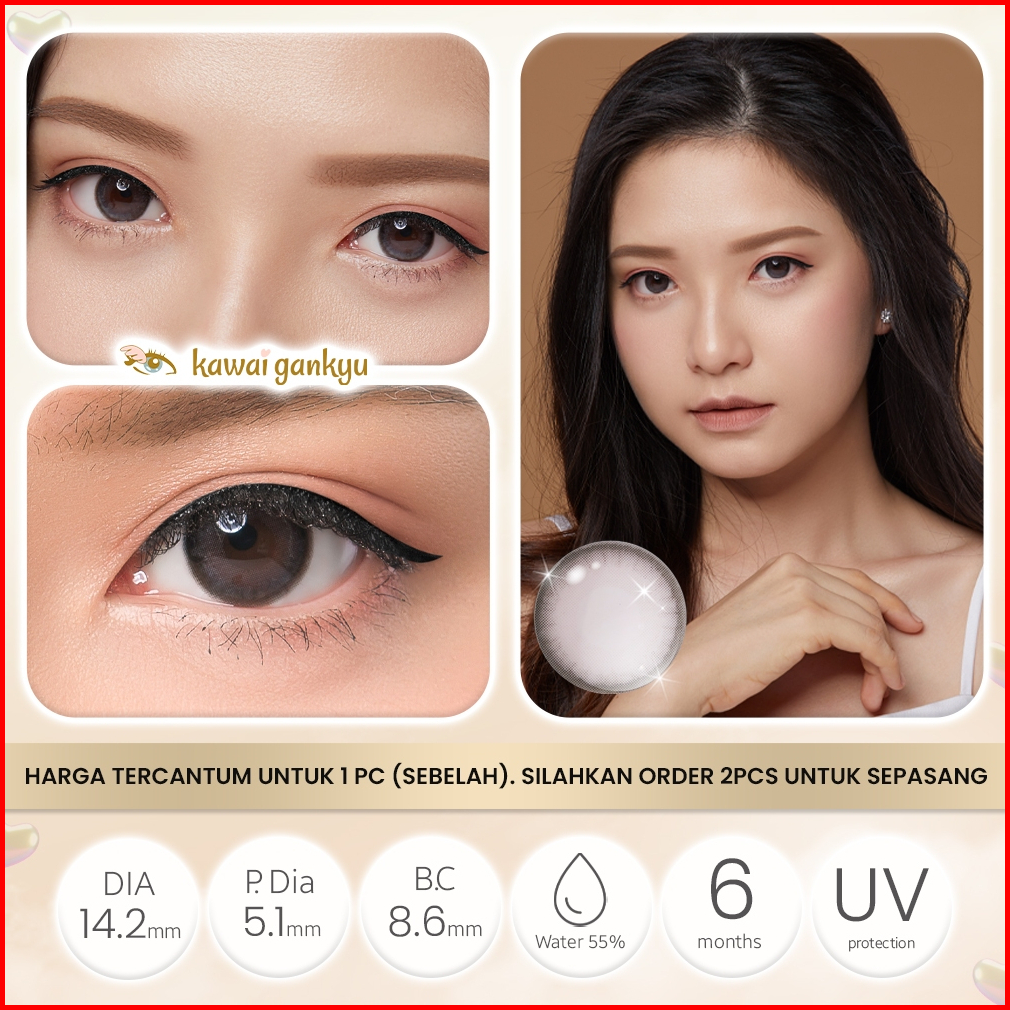 Kawaigankyu Softlens - Kitty Kelly Gray 1botol Setengah Pasang