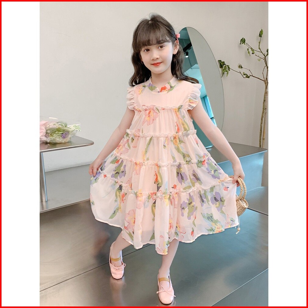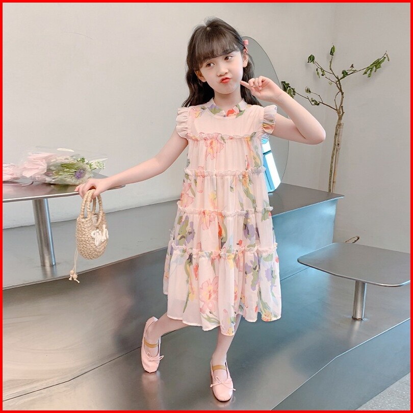Chubbi 33 -dress Anak Perempuan Bunga Sifon Fashion Korea