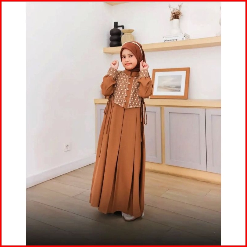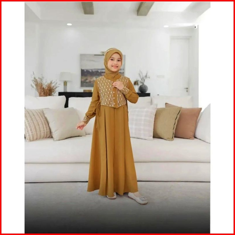 Shabira Kids Free Phasmina Uk M L Xl Usia 5-13 Thn Bahan Crinkle Mix Brukat Gamis Anak Perempuan