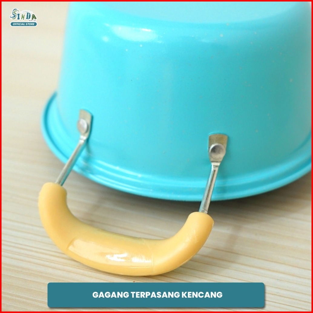 Sinda Panci Kuah Enamel 18cm Tutup Kaca Dan Pegangan Plastik Anti Lengket
