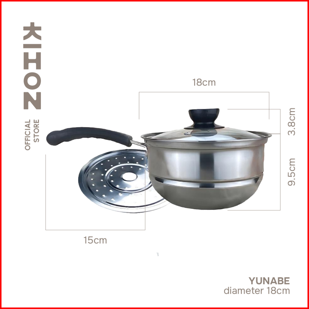 Kihon Yunabe Panci Susu Steamer Kukus Stainless Steel Milk Pot Anti Panas 18 Cm 20 Cm Subron