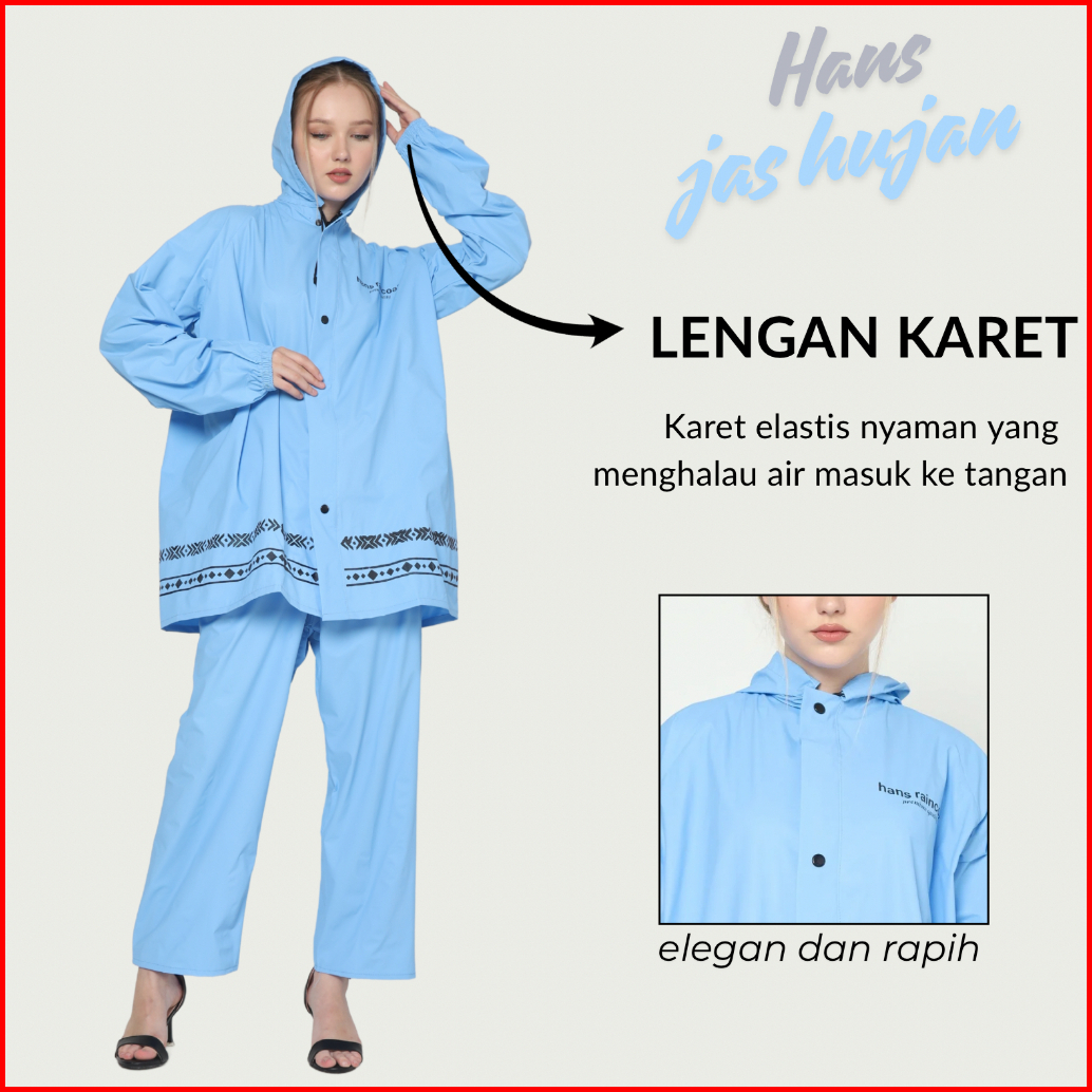 Jas Hujan Pria Wanita Setelan Jaket Celana Dewasa Pvc 0.25 Tebal Elastis Anti Air Hans