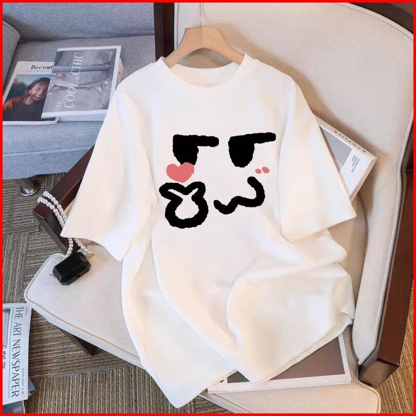 100 Katun Kaos T-shirt Wanita Motif Kartun Imut Atasan Musim Panas Unik