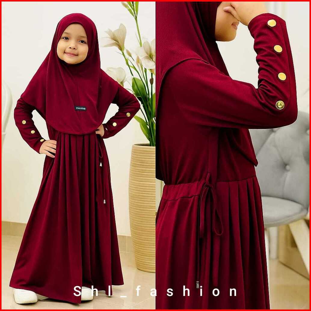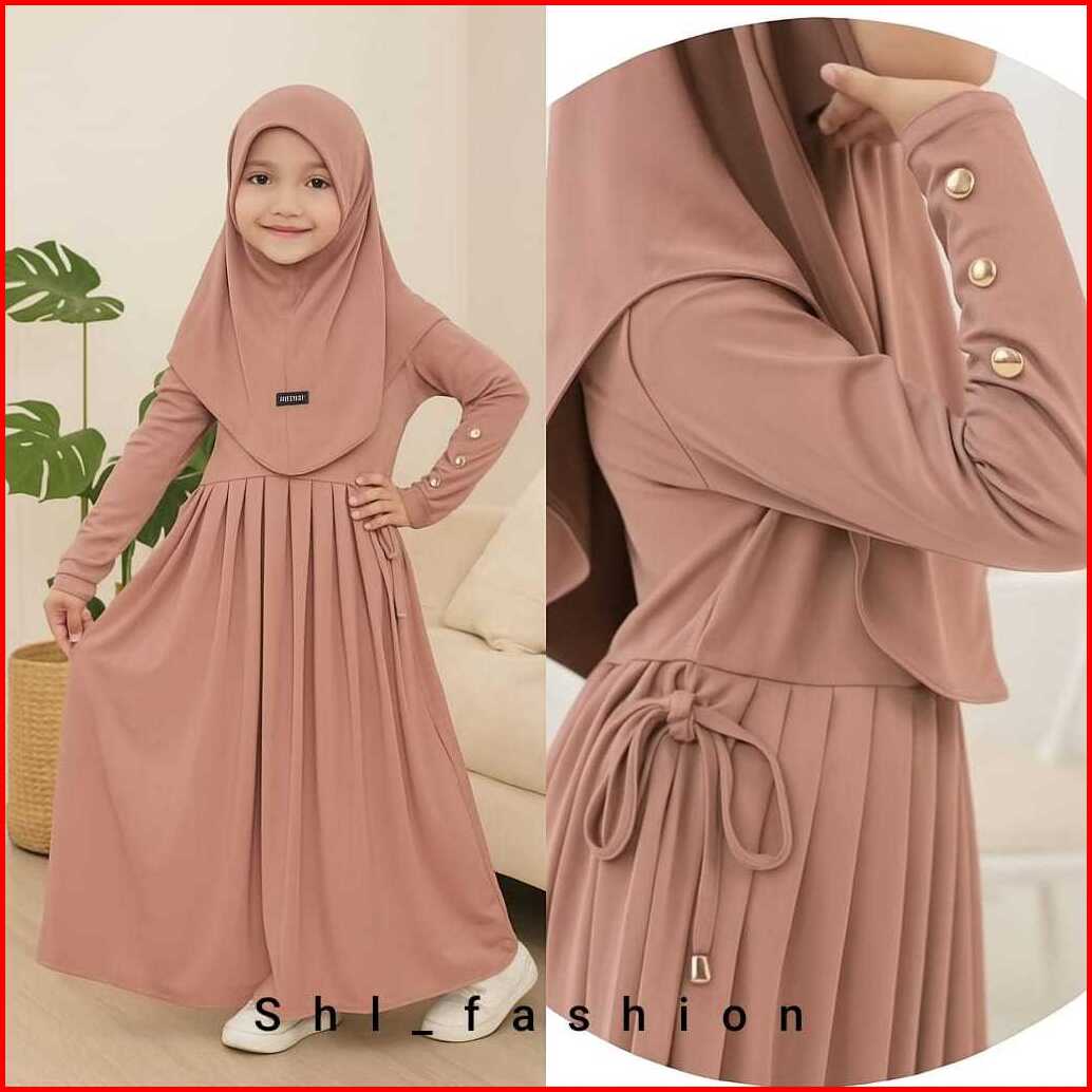 Gamis Abaya Shela Set Hijab Gamis Anak Serut Pinggang Bahan Jersey Premium Usia 1-10 Tahun