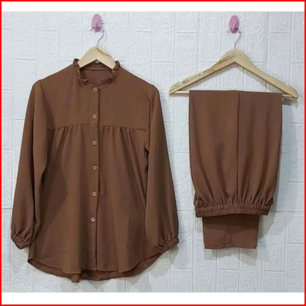 Maulida Stlelan Crinkle Airflow Oversize Satu Set Stelan Maulida Satu Baju Dan Satu Celana