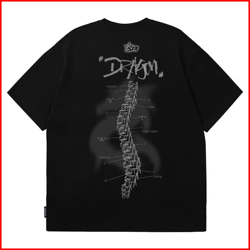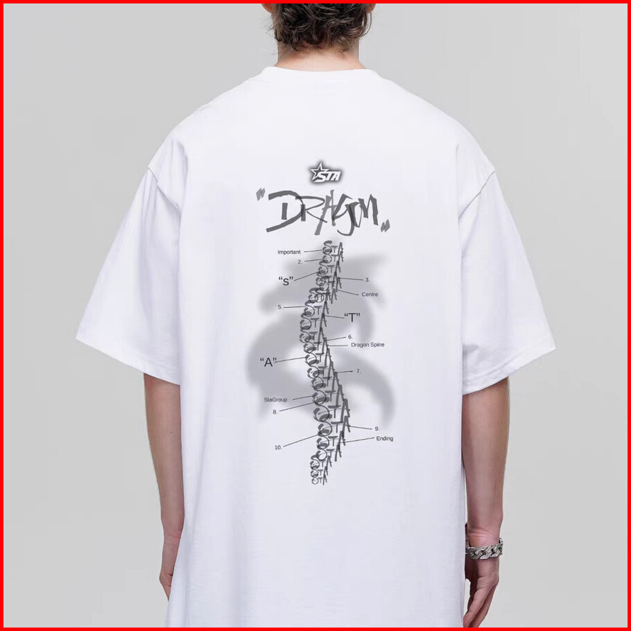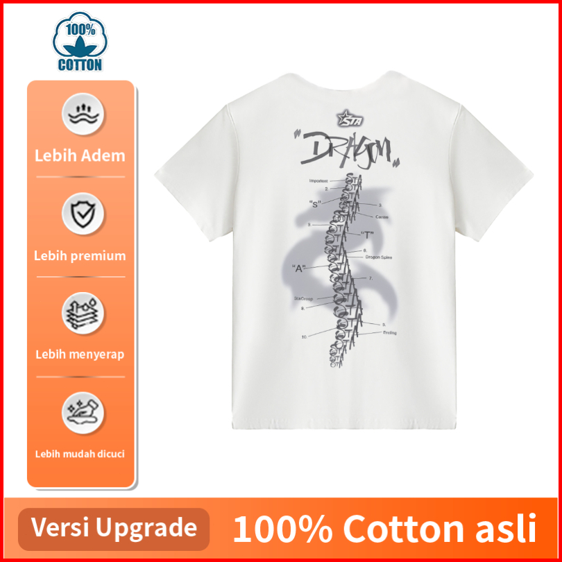 Kaos Distro Indonesia Trendy Gambar Teks Branded Desain Tulang Naga Baju Casual Gaya Urban