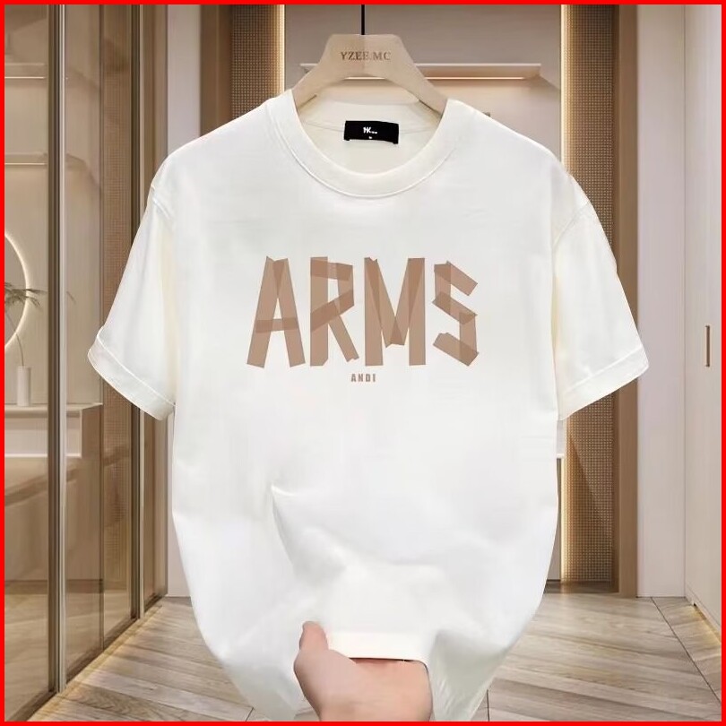 2025 Musim Panas Baru Kaos Lengan Pendek Pria Merek Trendy Fashion Longgar Santai Kaos Cetak Hitam