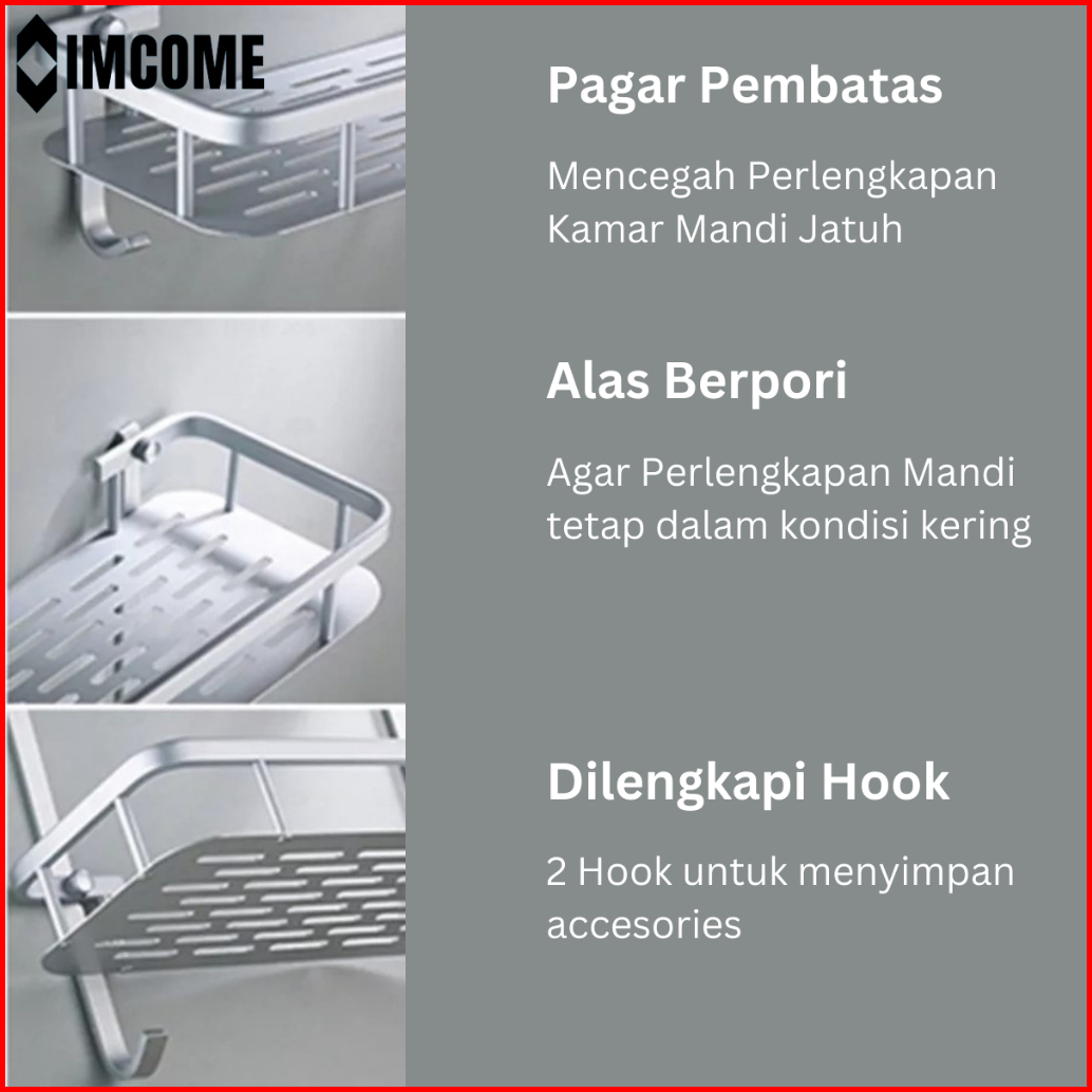 Imcome Rak Sabun Kamar Mandi 2 Susun Serbaguna Tempat Penyimpanan Perlengkapan Dan Peralatan Kamar Mandi Persegi Stainle