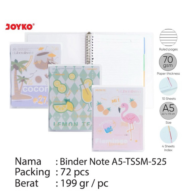 Map Binder Note A5 3 Warna Kelapa Lemon Flamingo / Motif A5-TSSM-525 Gambar Lucu Liberalism Summer Musim Panas Joyko