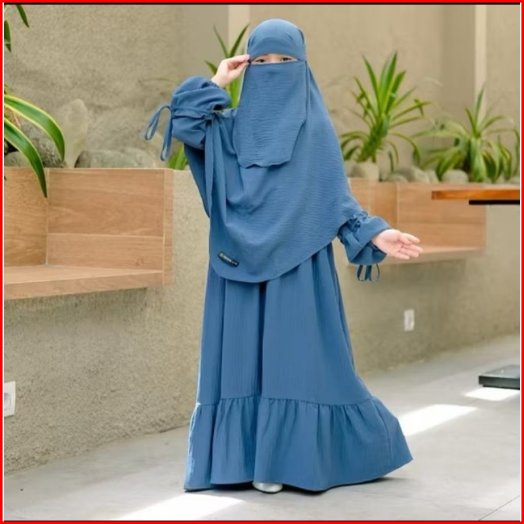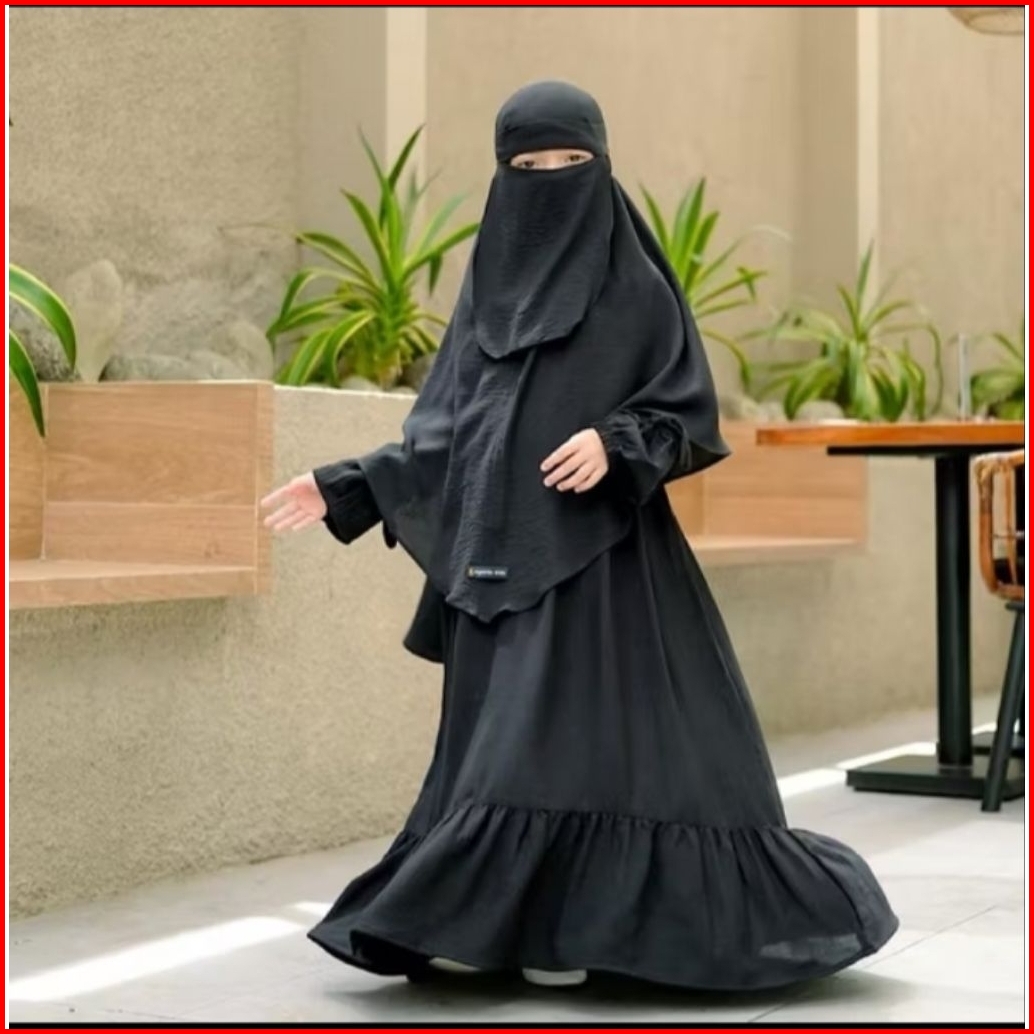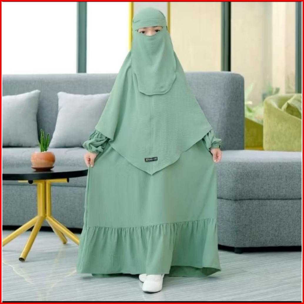 Gamis Anak Syar I Set Hijab Khimar Bergo Free Cadar Bandana Usia 3-11tahun