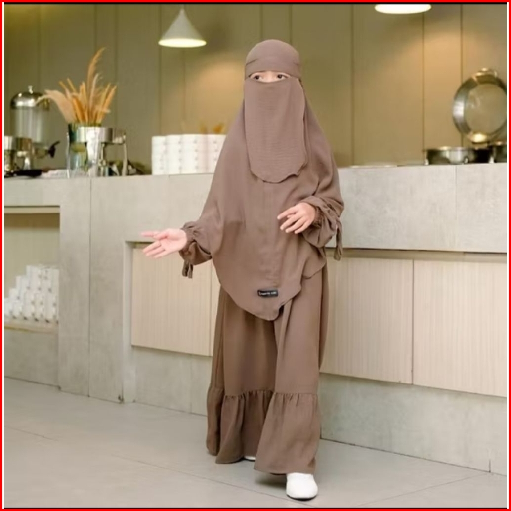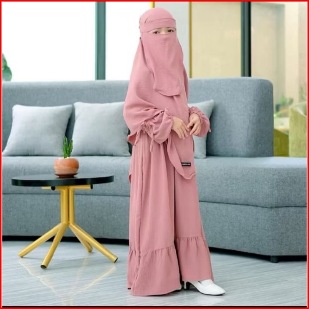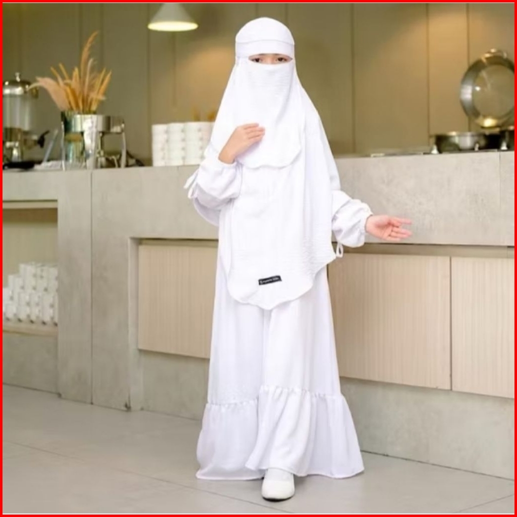 Gamis Anak Syar I Set Hijab Khimar Bergo Free Cadar Bandana Usia 3-11tahun