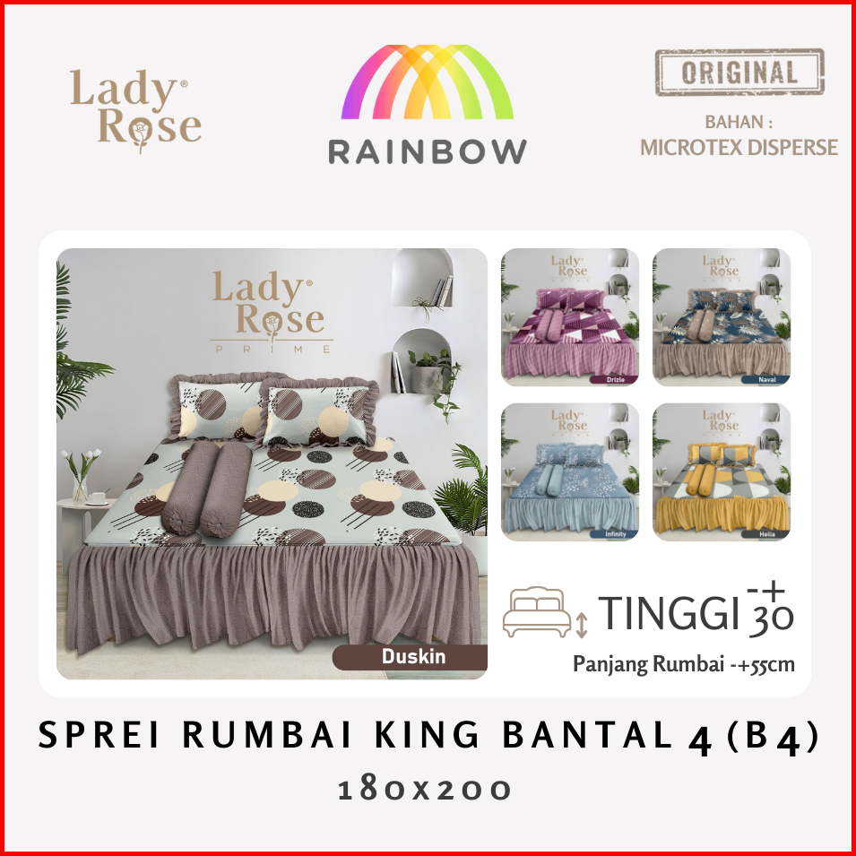Lady Rose - Sprei Rumbai King B4 180x200 Bantal 4 Terlaris Pilihan