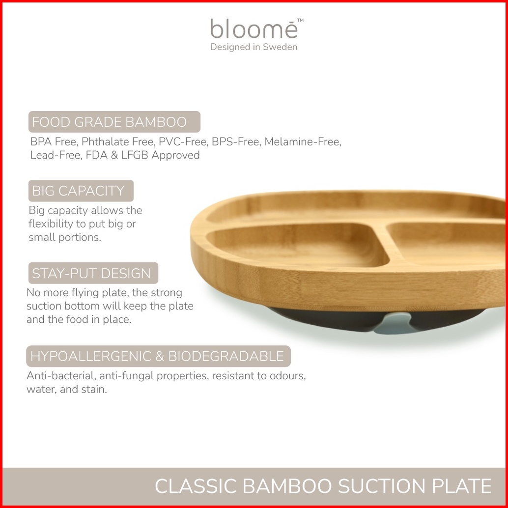 Bloome Classic Bamboo Suction Plate For Baby Toddler And Kids Piring Makan Bambu Bayi Premium